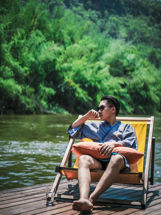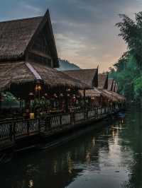 Kanchanaburi is a relatively small tourist destination in Thailand. There is no hustle and bustle, no crowds, and everything is as it is. The hotel we are going to stay in today is located on the bank of the beautiful and winding River Kwai in Kanchanaburi. The best way to reach the hotel is to drive to Phutakien Pier. You can park your car here. There is a long-tail boat at the pier. It takes only 20 minutes to reach the hotel. When you sit on the boat, the mountains on both sides of the Kwai River are covered with green trees, it feels like the Amazon rainforest. This floating raft hotel is one of the top ten floating hotels in the world. All the rooms are single-family cabins floating on the river. The quaint houses are reflected on the water, as if they are growing in nature, and are integrated with the river jungle of Zhouguo. The sky is clean without any impurities or stains. It only takes one look to fall in love with it. It is certain that this is the ideal "utopian" place. The rooms are mainly made of bamboo and wood. When a speedboat passes by occasionally, the room will feel swaying. The gauze curtains on the big bed give the whole room a romantic holiday atmosphere, which is very consistent with the natural and primitive style of Kanchanaburi. At night, you can only hear the gurgling river and the chirping of birds and insects. The comfortable white noise will help you fall asleep quickly. The most interesting activity here is rafting. Put on the life jacket provided by the hotel, jump into the Kwai River, and don't think about anything. Just drift forward with the river. It is both exciting and relaxing. Just don't go too far from the shore during the drifting process. Swim towards the shore when you are close to the end of the hotel. Otherwise, you will not be able to walk back to the hotel from the shore. If you are lucky, you can meet a kind boatman, and ask them to help pick you up and send you back to the hotel. Don't ask me how I know. Because it is deep in the jungle, you can only eat at the hotel. The restaurant dinner is not bad. There are buffet and a la carte options. The buffet is relatively simple and not cost-effective. It is still recommended to order a la carte. #BangkokHotel #OverseasTravel #Kanchanaburi #Thailand #BridgeovertheRiverKwai #HotsummerDestinations #travel