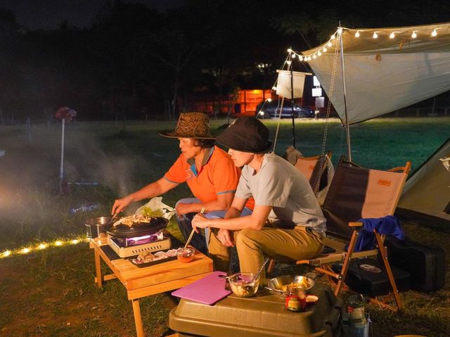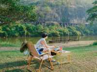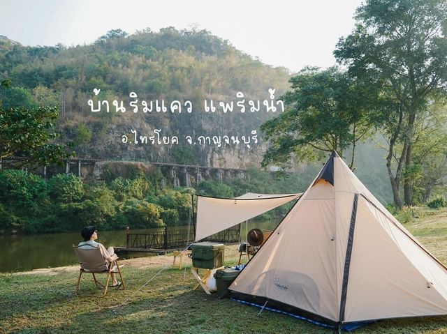 #Tent site Tent site, view of the railway that passes through Krasae Cave Located next to the Kwai River, Sai Yok District, Kanchanaburi Province Ban Rim Kwai Camping Site ⛺️🚂🚃❤ When you arrive, go to pay the tent site fee, 200 baht per person. The officer will give you a flag with a tent number. Then drive with the officer to see the tent site. You can choose as you wish. The daytime here is quite hot. Find a place to hide from the sun under the trees. Before long, the first train came to us even before we set up the tent. When the sun started to set, there were tourists going on a raft and playing in the water. We started setting up the tent. Today, we rented the whole site again. We chose a place to chill. At night, the air started to get cold. Sitting and eating barbecue together was really nice. After eating, we took a shower and got ready for bed. The dew fell heavily, making the air cool and comfortable. We slept well all night. Woke up in the morning. The first train arrived before the fog cleared and the sun had yet to rise. It was a very beautiful sight. After that, take pictures to capture the atmosphere, walk around, play in the water. The water here is clear and very cold, very refreshing. Before going back, another train came. Set up the camera to take pictures in front of the tent just in time. It's so beautiful. Where else can you find a view like this except Kanchanaburi? 📌Tent pitching fee 200/person 📌There is a beach where you can swim, not deep, life jackets for rent. 📌Clean bathrooms, separated for men and women. 📌There is a point to connect electricity, right at every electric pole. 📌There are sinks and faucets in many places. 📌You can cook, but do not use electric stoves or electric pans. #BaanRimKwaePaeRimNamResort #ThamKraSae #TentPitching #TentPitchingSite #KanchanaburiTentPitchingLand #Kanchanaburi #Camping #DeathRailway #PitchingTentsRiverside #PitchingTentsKanchanaburi #camping #KanchanaburiAttractions #KanchanaburiAccommodations