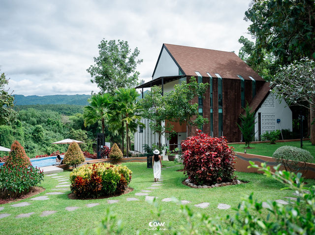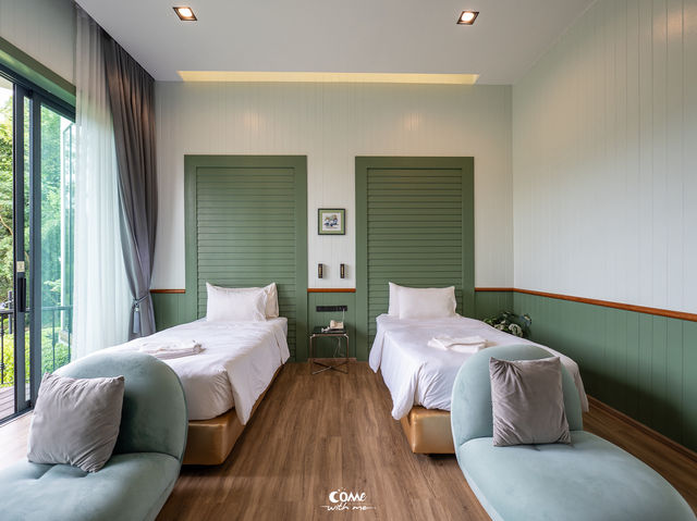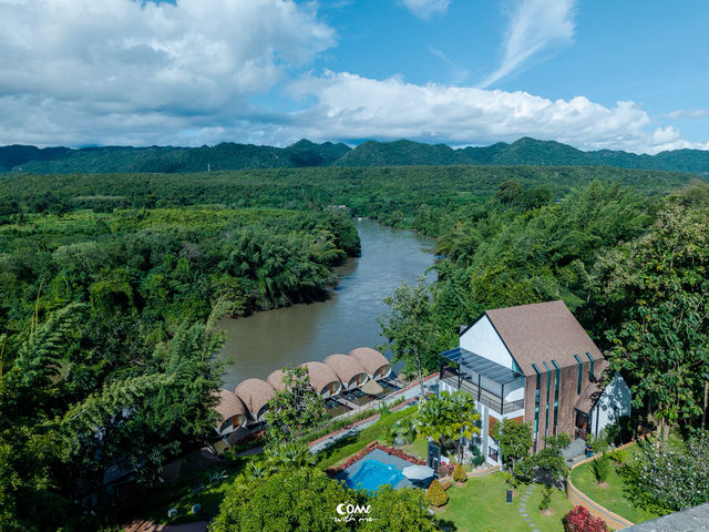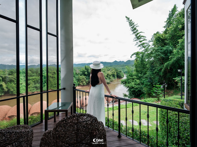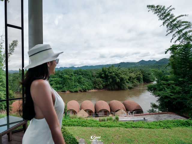 Accommodation with a view of the river bend in Kanchanaburi🌳✨