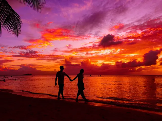 Saipan Travel Photography: Lovers at Sunset Strolling along the beach with your partner under the cool sea breeze of Micro Beach, the fiery clouds and the calm sea quietly create a beautiful melody. This journey with your loved one is deeply engraved in your mind. Modern life is busy, and we often overlook the details of life. Actually, a happy and fulfilling life is just an ordinary day, depending on whether we put more effort into it. Photos record the bits and pieces of life and responses. When we grow old, youth fades, and memory declines, these photos still capture past moments one by one. This is the true meaning of travel photography.