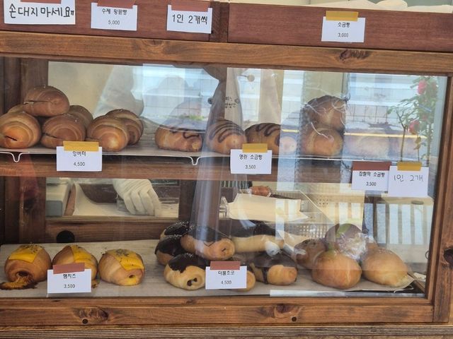 I visited Peanut Bbang Atgan, a new bakery in Busan known for its salt bread! The bakery recently opened, so I decided to check it out. The day I went, they opened at 12 PM, and I had to wait outside for about 25 minutes before getting in. While the staff instructed us to line up in two rows, they didn’t actively manage the queue, which caused some confusion among the customers. When I finally got inside, their famous steamed bread was already sold out 😢, and even the basic salt bread was gone. It was also a bit disappointing that there was a limit of four items per person. I ended up buying the glutinous rice salt bread, pollack roe salt bread, and ham & cheese salt bread. The ham in the ham & cheese salt bread was just sliced ham, which was a bit underwhelming, but the pollack roe and glutinous rice salt bread were delicious! It’s worth visiting at least once—if there’s no waiting line, that is! 😊