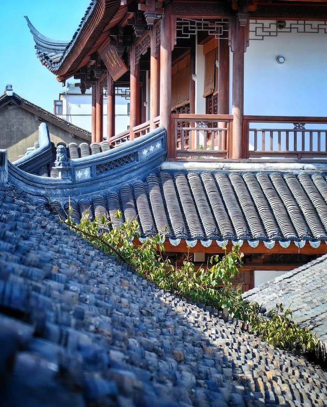 Qingxi Old Street has a long history. The stream that runs through the village is called Qingxi. For 30 yuan, you can buy a boat ticket and enjoy the scenery on both sides of the bank, with the water being green and clear enough to see the underwater plants . Qingxi Old Street's iconic buildings🏡: Wanghai Tower, Stilt House, Jiangnan Garden, and Jifang Bridge, etc. Walking on this ancient street, people can feel the profound historical and cultural heritage and its perfect combination with modern style💞. Choose to travel on weekdays, there are not many people in the ancient town, it's very quiet, I really like this environment. There is a coffee shop in the ancient town that I like very much: Yichi Garden, which seems to have been the private garden of Xu Jie, a prime minister of the Ming Dynasty.