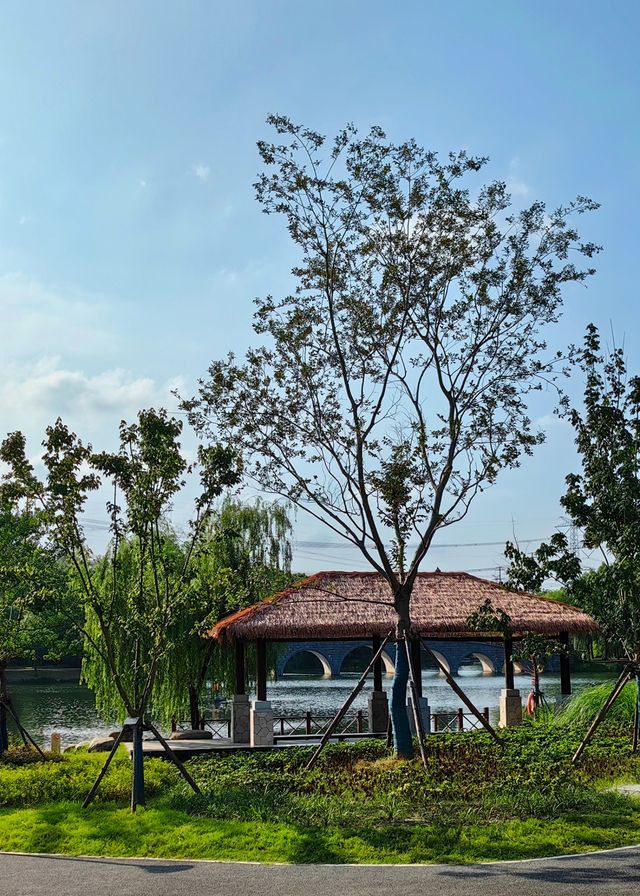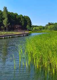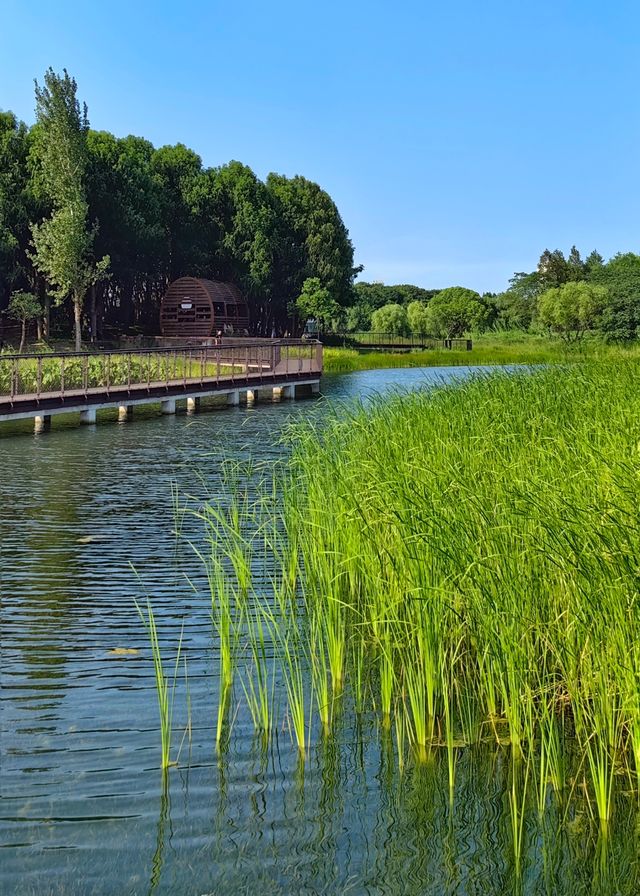 Surprisingly, there is a park full of wild fun near Caolu Town in Pudong, called Jinhai Wetland Park. As soon as you enter the gate, you can see the lush greenery and sparkling lake, which relaxes your body and mind. Take a breath of air full of negative ions, as if you are already in the suburbs. Only after reading the park's nameplate did I know that Jinhai Wetland Park is a demonstration project of Shanghai's '14th Five-Year' ring city park belt construction, and it is one of the first batch of 12 wild animal habitats named in Shanghai. The park is positioned as a wetland landscape area, exploring the restoration and optimization of the regional ecological environment. The park includes slow lanes, waterfront leisure spaces, smart park management systems, signage guidance systems, etc., in order to realize the vision of harmonious coexistence between man and nature. The park is not small, and the lakes and rivers account for about one-third of the total area. The aquatic plants such as reeds and lotus in the lake are lush, and all kinds of birds are flying around, which is pleasing to the eye. Transportation: You can take Metro Line 9 to Jinhai Road Station, come out of Exit 4, and then walk about 900 meters to get there.