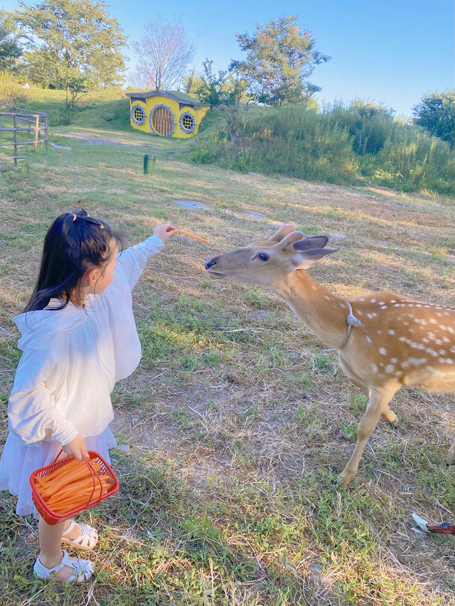 🌟A good place for parent-child outings. Children can't miss the farm. Come and check in under the hot summer sun. The farm, known as Little Jeju Island, is not big but it's great for taking pictures. It feels like a hobbit village. There's also a large lawn. You can have a picnic and barbecue in the tent. Of course, the most important thing is that you can play with the small animals. There are also fruit picking and horse riding activities. 🚗Location: Tiantian Orchard, 477 Huangta Road 🅿️There is a parking lot at the entrance, which is very convenient. 🍭Play experience: Admission ticket🎫30 per person. A basket of carrots💰15. You can feed all the small animals in the farm. There are sika deer, alpacas🦙, sheep🐑, rabbits🐰 and horses. When we went there, it was summer. The fruit picking was the seasonal yellow peaches🍑 and grapes🍇. They were sweet and big. It was also great to experience the fun of picking. If you encounter the harvest season in autumn, there will be a lot of vegetables and fruits. It's worth checking in. When we came out, we just caught up with the sunset🌇. We took beautiful pictures and went home! Although it's a bit far from the city, it's nice to escape from the city occasionally to breathe the fresh air of nature.