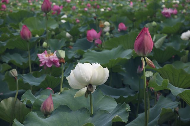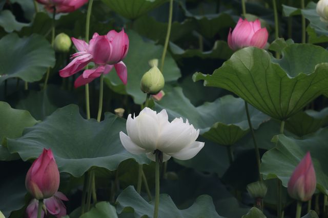 The lotus in Huangxing Park in Shanghai is blooming beautifully this year, with cameras and mobile phones of all sizes joining the battle. Everyone is a master photographer, with grandmothers and children taking pictures. I'm just joining in the fun.