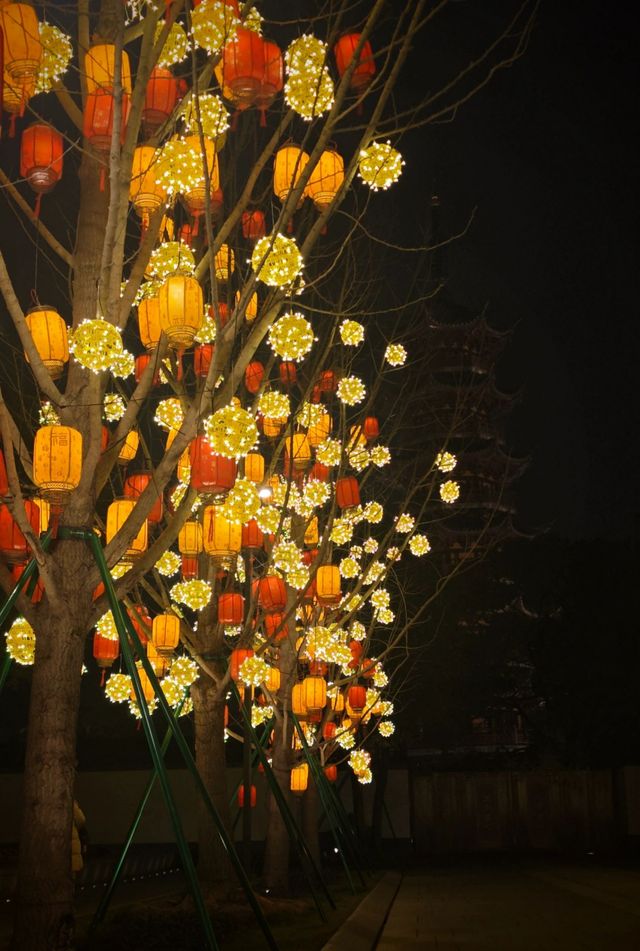 The night view of Longhua Temple is amazing when the lights come on