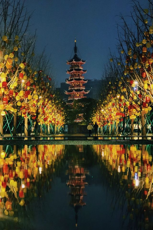 Longhua Temple quietly released its big move, the fireworks are so beautiful! The fiery red 🏮, which is full of the flavor of the New Year, coupled with the lit up Longhua Ancient Pagoda 🛕 not far away, is both dreamy and photogenic! From a distance, it looks like a butterfly spreading its wings. So dreamy! Taking photos of the reflections of the temple and lanterns on both sides at the end of the pool can create a butterfly-like shape🦋 The red and yellow lanterns🏮 on both sides of the old street are also very eye-catching! The close-up of the lantern alone has a very New Year atmosphere 💡The lights are turned on at about 17:30 🛕The location is outside Longhua Temple, you can't take photos from inside the temple ⚠️Longhua Pagoda is not lit up every day, so you still need some luck to take photos of the tower body👀 📷Many people come to take photos these two days, so if you want a camera in the middle, come early.
