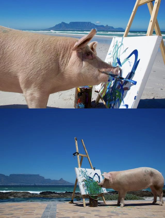 The pig that can paint is holding an exhibition! A painting sold for 170,000!