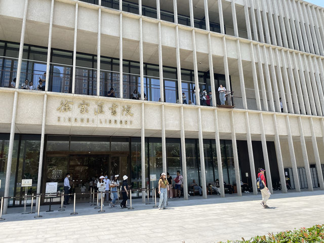 I passed by the Xujiahui Catholic Church before, on the left side of the square in front of the church, there is a square modern orange building, seeing tourists coming in and out, I guess it is a place for art exhibitions. I came to have a look today. After passing through the open coffee shop, I realized it should be a bookstore, but I don't know which bookstore it is, guessing from the decoration style, is it 'Zhongshu'? Looking at the staff's clothing, I guess it is Xujiahui Library. It's really open and friendly here. I learned from Baidu that on January 1, 2023, the Xujiahui Academy and the new Xuhui District Library were newly opened. It's a coincidence that I went to the Sports Museum, SAIC is preparing for the promotion of new cars, the 'Zhiji' series. It looks like a big event. Today, the parking lot of the Sports Museum (No. 1111, Caoxi North Road) is open to the public. But why can't I find the entrance on Gaode Map?