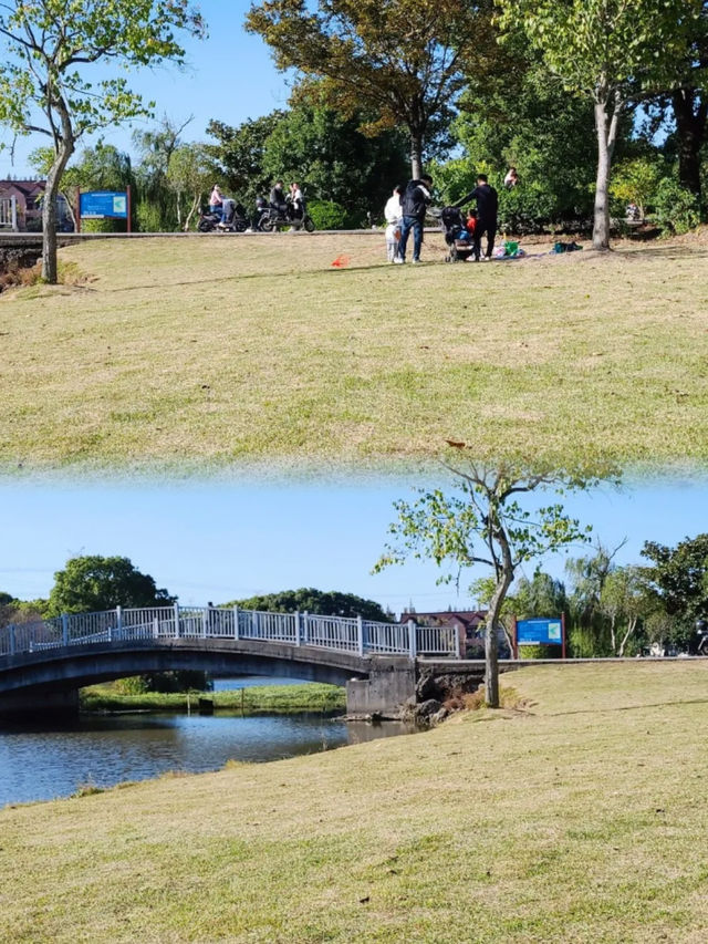 🌸 Sunshine Park is quite large, and it's common for nearby residents to come here for a breeze, a leisurely stroll, or simply to unwind. 👫 It's very suitable for individuals, couples, or families to check in and enjoy the atmosphere~ 🌟 The overall feeling inside is pleasant, with large expanses of lawns scattered in every corner, artificial streams, 💦 and meandering lakes that ripple through the entire garden, offering a quiet and refined escape that's truly healing~ 📝 When the author visited on the weekend, 🎤 by chance, there was a broadcaster singing. His voice was captivating and charming, with melodies that rose and fell, full of the cultural colors of street performance, presenting a unique flavor❗