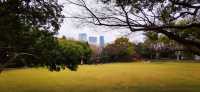 Tianshan Park, located at No. 1731 Yan'an West Road, Changning District, Shanghai, borders Yan'an West Road to the south, Kaixuan Road to the east, and Tianshan Road to the west. The site was originally wasteland and graveyard. On National Day in 1959, the area was reconstructed into a park open to the public, named Fahua Park; in 1965, it was renamed Changning District National Defense Sports Park; in May 1975, the park was renamed Tianshan Park. Tianshan Park features Huluhu Lake as its main attraction, with Fengguang Island to the northeast of the lake, behind which lie Luan Mountain and Rong Mountain. Pavilions, terraces, corridors, and bridges are set around the lake, forming a picturesque landscape of lake and mountain scenery. Near the main entrance of the park, there is a 5,800 square meter shell-shaped lawn that is particularly eye-catching. Tianshan Park