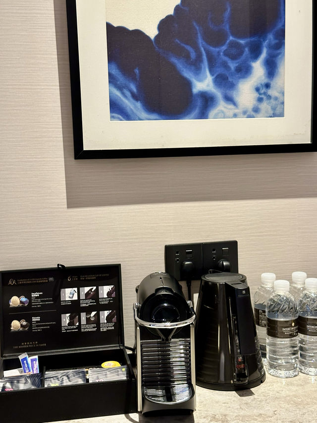 For this business trip to Shanghai, I chose the InterContinental Hotel near the Hongqiao Airport, which is also close to the Hongqiao Business District. The standard room type at the InterContinental is not very spacious, with a single-sided layout that allows for views of the cityscape. As a result, the corridors are quite long, and it takes a while to walk with luggage. It is very suitable for guests attending exhibitions and in transit.