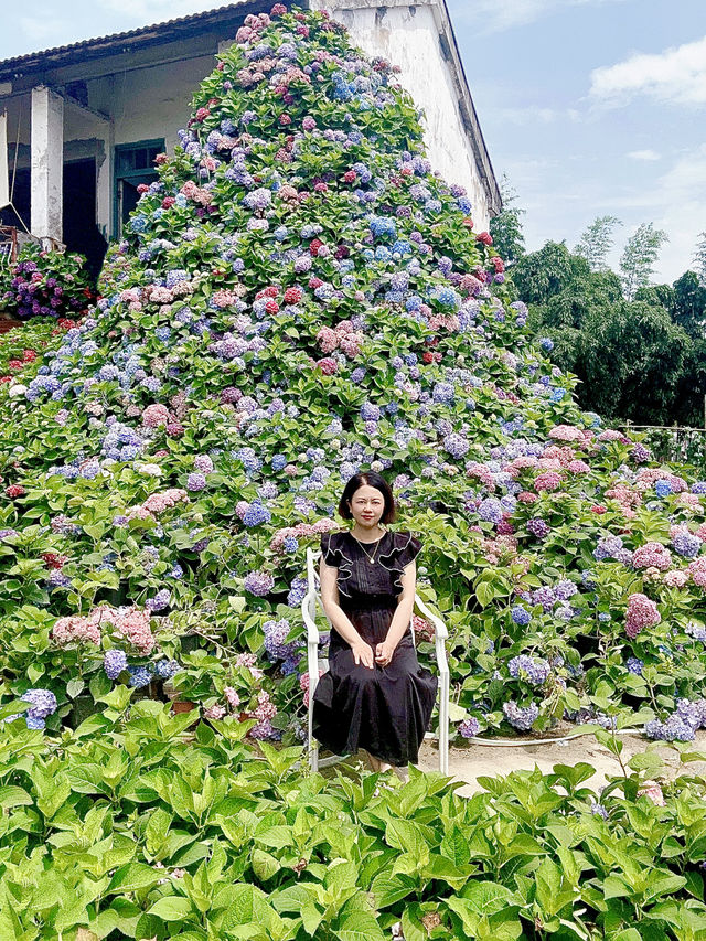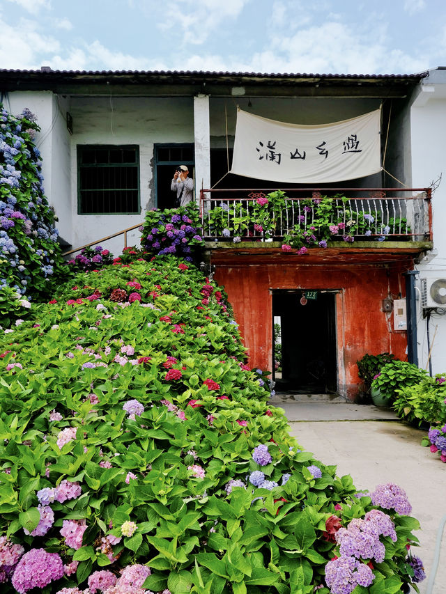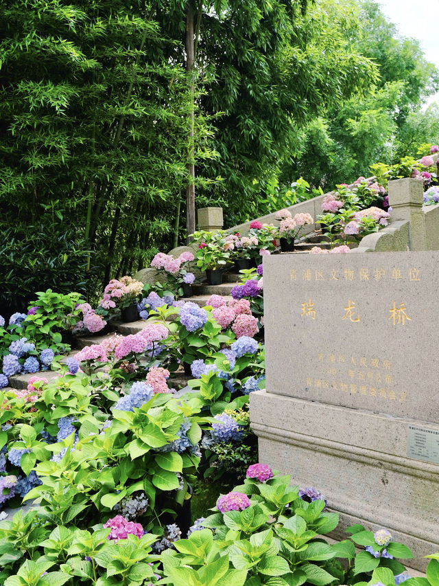 After the Dragon Boat Festival, this hydrangea waterfall has been constantly promoted online In a village in Qingpu that I have never heard of The Hydrangea Festival ends on June 16th 🔚 Miss a day, wait a year, take advantage of Father's Day to quickly take the elders for a drive 📍Liantang Dongshao Village, Qingpu Follow the navigation into the village, and the road is lined with flower greenhouses There are also potted Chinese roses for sale in the village 🪴 Free roadside parking 🅿️ Saw the hydrangea waterfall! Unfortunately, it's almost withered Hydrangea Waterfall Hydrangea Bridge (ancient Ming Dynasty bridge: Ruilong Bridge) Hydrangea Toilet 🚾 Wild Ginger Coffee ☕️ The only commercial facility in the village A village surrounded by hydrangeas Come over to see the excitement, casually snap a photo and it's a blockbuster A demonstration point for rural revitalization The majestic temple at the entrance of the village, an ancient temple with a history of over 700 years, is impressive in scale Inside are two hundred-year-old towering ginkgo brothers 🌲 Apart from the coffee shop, there are no other commercial facilities in the village, it is recommended to find a small restaurant in the town for a meal 🍴, 'Fumin Restaurant', the local dishes are very authentic, the prices are also affordable, and free parking is available 🅿️