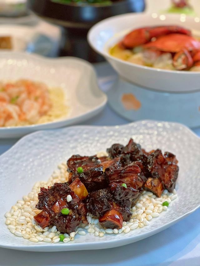 In Shanghai, Huaiyang cuisine that you can never get tired of|||🌈 On weekends, have a family dinner with your relatives at Tianshui Yaju on Binjiang Avenue and try the special Huaiyang cuisine and Yangzhou tea snacks here. 🌸 The environment is high-end and elegant, with a strong sense of design. Green plants can be seen everywhere, making it quiet and comfortable. The private rooms are spacious and atmospheric, with high privacy, and the service is very professional. It is especially suitable for family gatherings and business banquets, and it is very impressive to invite guests to dinner. 🦁【Stewed Fish Head with Lion's Head】 The fish meat is delicate, and after being carefully made into lion's head, it is smooth and not greasy. The stewing method retains the fresh essence of the fish, making it unforgettable. 🦀【Steamed Crab with Meatballs and Baby Cabbage】 The crab meat is plump and sweet, and the fresh taste of baby cabbage and the rich aroma of meatballs complement each other. The three are combined to bring a rich and wonderful taste. 🐍【Jiangyin Intangible Cultural Heritage Cross-Bridge Eel】 This is an intangible cultural heritage food full of Jiangyin regional style. The sauce is rich and thick, wrapping large and tender eel meat, and every bite brings a full sense of happiness. 🦐【Shrimp Balls with Scallion Oil and Shrimp Roe】 The shrimp balls are chewy, smooth, and delicious, paired with the crispness of water bamboo, the rich aroma of scallion oil, and the freshness of shrimp roe. The overall taste is fresh and elegant, making people feel relaxed and happy. 🌹Restaurant name: Tianshui Yaju Huaiyang Cuisine Dim Sum Banquet (Binjiang Branch) 🌏Address: 2F, China COSCO Shipping Building, No. 5299 Binjiang Avenue 🚇Transportation: Near Tangqiao Subway Station on Line 4