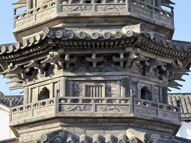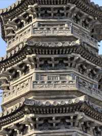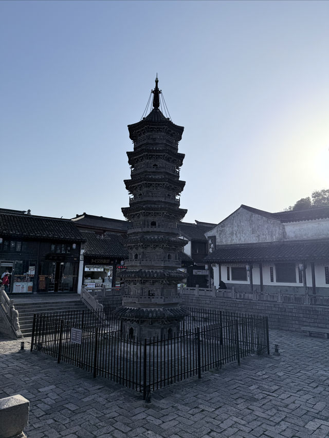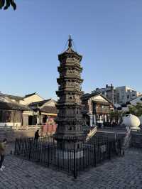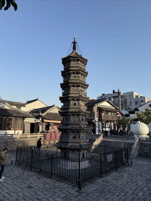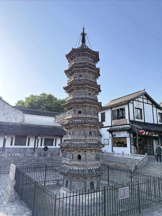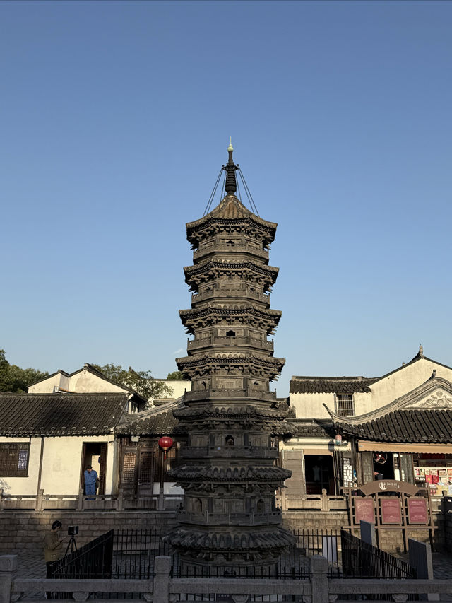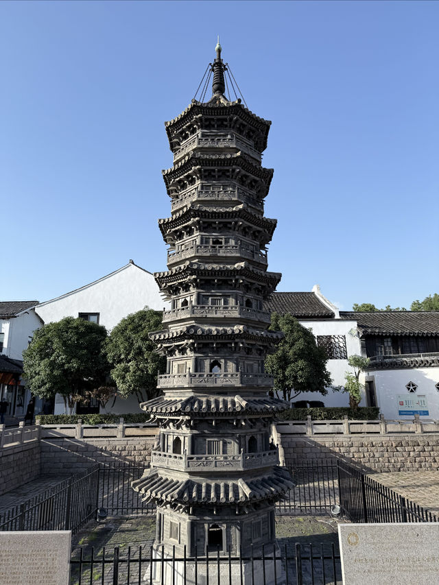 Nanxiang Twin Towers The two brick towers were built in the Northern Song Dynasty, destroyed by fire in the Qianlong period of the Qing Dynasty, and rebuilt on the original site in the 1980s. The Nanxiang Twin Towers are a famous landmark in Shanghai. 🛕The brick towers are modeled after wooden bracket structures, with a height of 11 meters, eight sides and seven floors, a stone base, and four doors and four straight windows on each side of the tower body. The railings, eaves, and brackets are all carved from blue bricks. The octagonal top is composed of a wheel, a pole, and a bead. The Nanxiang Twin Towers, together with the surrounding old streets, ancient wells, and Buddhist temples, are witnesses to the history of Nanxiang Ancient Town.