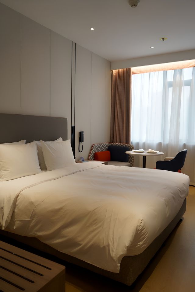 Holiday Inn Express Shanghai Jing'an Temple is currently the only Holiday Inn Express hotel in the inner ring of Shanghai's city-level commercial district, adjacent to the Shanghai Exhibition Center and Jing'an Temple. The Yan'an Elevated Road, which runs through Shanghai from east to west, passes in front of the hotel, which means it has a unique location advantage. When I walked into the hotel lobby, accompanied by the brand's fragrance and music, the fresh, simple, yet modern and stylish design style instantly gave me an extremely relaxed and comfortable experience. The hotel has a total of 118 rooms, fully equipped and efficient. I stayed in a king room this time. After several versions of updates, the Holiday Inn Express brand has retained its distinctive features and highlights, while continuously improving details and enhancing the check-in experience. For example, the comfortable color scheme, ample open luggage storage area and hanger set, premium mattress, signature soft and hard double pillows, and brand toiletries, all have a high level of comfort according to brand standards, and are familiar and friendly to members. The hotel has a 24-hour gym on the second floor, as well as a free smart self-service laundry room, which is more thoughtful for business travelers. The hotel breakfast is located on the first floor, with a variety of buffet dishes and local specialties, and the brand's signature noodle soup is worth a try.