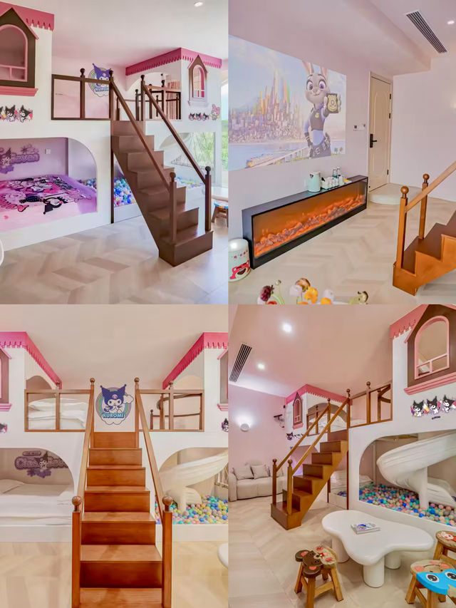 🏠 Homestay Overview Location: Located at No. 41, Xiajiazhai, Chuansha Town, Pudong New Area, only a 7-minute drive from Shanghai Disneyland. Appearance and Environment: A three-story white building in a quiet environment, like a paradise away from the world, a perfect place to relax and vacation. 🛏️ Room Features - Family Room: Various cartoon-themed decorations, such as Kuromi, Zootopia, Elsa, etc., with bunk beds, slides, and dream castles, not only for a happy sleep but also for a happy play. - Entertainment Facilities: The room is equipped with a projector and a coffee table, specially designed for movie watching and leisure. - Modern Facilities: Smart toilets, central air conditioning, floor heating, etc., provide a comfortable living experience. 🍽️ Dining and Services - A hearty breakfast to meet different needs. - Thoughtful front desk service, providing travel advice and assistance, and special car transfers greatly enhance the travel experience. 🌳 Surrounding Environment and Entertainment Facilities - Close to Disneyland, convenient for tourists to travel. - Outdoor Activities: 660 square meters of grass, camping, barbecue, bonfire party, and other activities, as well as a super cool infinity pool. - Children's Entertainment: Slides🛝, small animals🦒, children can get close to nature while having fun like in an amusement park. 🎢 Nearby Attractions - Shanghai Disneyland: Very close, with special car transfers, easy to enjoy a dream trip. - Shopping Paradise: Bicester Shopping Village, Rabbit Wowo, and other shopping hotspots. - Natural Scenery: Shanghai Wild Animal Park and Picking Garden, close to nature. This homestay is an ideal choice for family trips, couple vacations, and girlfriend gatherings, and is the perfect starting point for an unforgettable holiday!