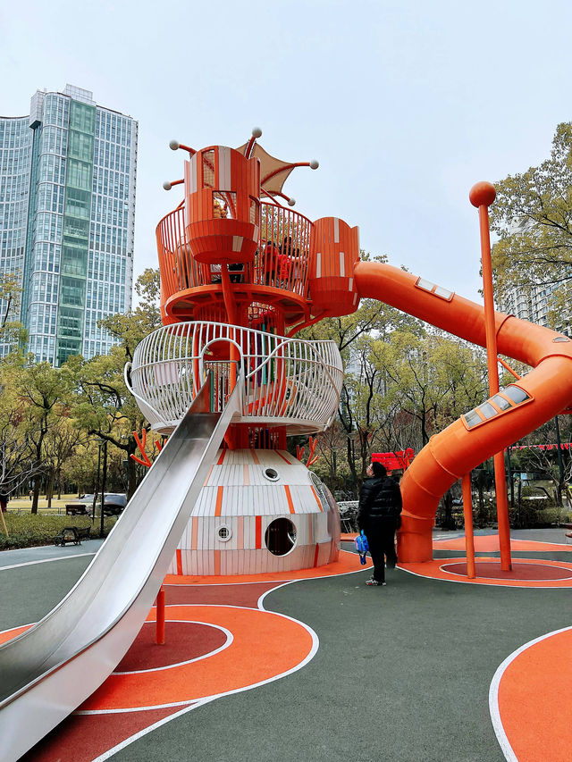 Changshou Park has reopened after 10 months of closure, with a new free "Rabbit Wowo". Let's get straight to the guide! 📍Address: Changshou Health Theme Park (No. 260 Changshou Road, Putuo District) 🚉Transportation: 🚇 290 m walk from Exit 3 of Changshou Road Station on Metro Line 13 🚗 The park has no parking lot. You can park at Yuanda Building next to the park. Parking fee: CNY 10/hour 🕙Opening hours: The park is open 24 hours a day ❤Recommended reasons: 👉 Super large slide combination: The slide is orange, which is very photogenic. There is a spiral slide and a straight slide, which are more suitable for older children. 👉 Children's playground for toddlers: There are trampolines, bee slides, climbing areas, tunnels, seesaws, rocking horses, etc., which are very suitable for toddlers. 👉 Next to the children's playground for toddlers is the smart bike area, where you can spray water columns by riding a bike. There is also a bubble machine. These two are charged. 👉 Smart football: There is a large lawn where you can play football.