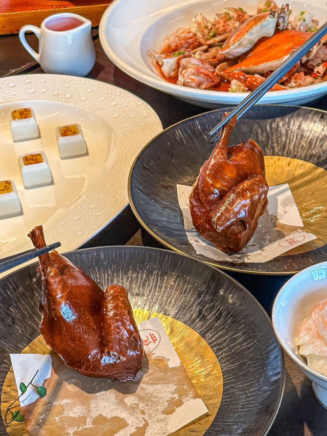 First, you have to order the homemade roasted opium fish head with large fried dough sticks. I think this portion is enough for four people. The fish head is fragrant and flavorful, with no fishy smell at all. The fried dough sticks are crispy on the outside and soft on the inside, absorbing the soup and becoming even more delicious. Camellia Milk Pudding I have to say, their chef is really skilled. This milk pudding is silky smooth and sweet, with a high visual appeal. I really feel a bit reluctant to eat it. Glass Crispy Roasted Pigeon It looks very appetizing, with a crispy shell and a reddish color. Taking a bite, the rich aroma of the fat is abundant, and the meat is tender, chewy, firm, and not dry.