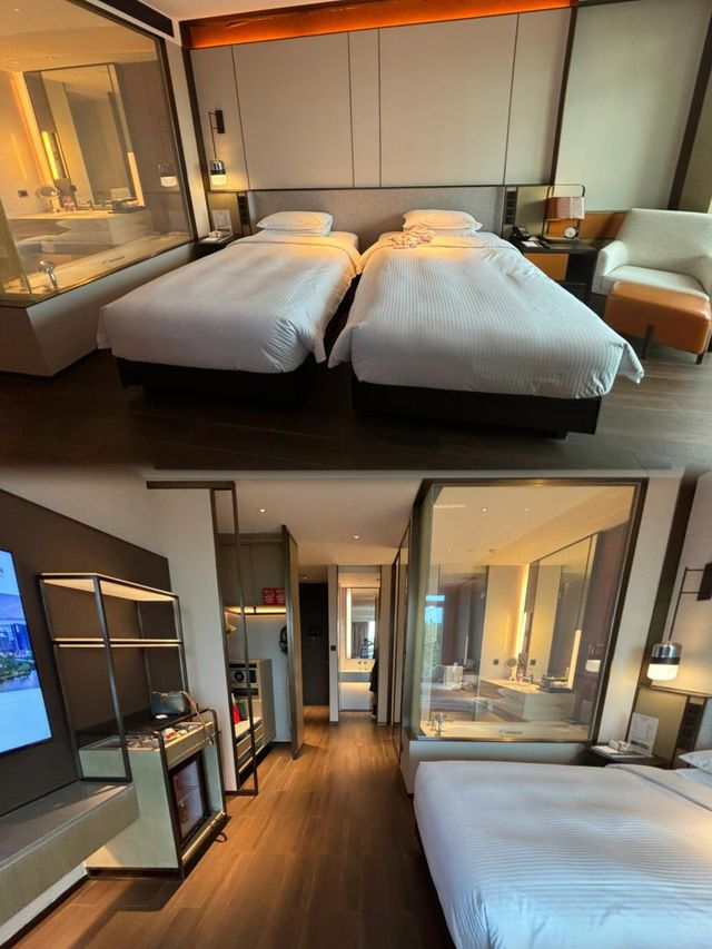 Comprehensive Analysis of Hyatt Regency Shanghai Songjiang Soundproofing / Cleanliness Hyatt Regency Shanghai Songjiang excels in cleanliness, with rooms maintained to a very high standard. Whether it’s the bed, bathroom, or every corner, everything is spotless with no hygiene blind spots. The public areas also uphold high cleanliness standards, creating a fresh and comfortable environment for guests. The soundproofing is excellent, with advanced sound insulation design effectively blocking outside noise. Room Types / Layout The room design is reasonable, spacious, and bright, with an overall elegant layout. The hotel has 256 rooms, including 18 suites. Guests can enjoy panoramic views of the lake, garden, or cityscape through floor-to-ceiling windows in the rooms. The layout of the standard twin and king rooms is ingeniously designed, with the walk-in closet near the door and connected to the bathroom, providing ample storage and activity space for guests. Amenities / Facilities Rooms are equipped with a wide range of facilities, including TV, telephone, wardrobe, safe, coffee machine, electric kettle, minibar, etc., all in good working condition. The bathroom is fully equipped, with stable water temperature and pressure, and offers high-quality toiletries. Additionally, the hotel provides free Wi-Fi to meet guests’ internet needs. Average Spending The average spending per person is at the average level for hotels of the same class, offering moderate cost performance. According to platforms like Trip.com, the average spending per person for a standard room is around 300 RMB. Other Tips • Architectural Features: The hotel’s exterior design is modern, with a beautiful surrounding environment. Opposite the hotel is Songjiang Wanda Plaza, and it’s a 5-minute drive to Songjiang University Town Metro Station; popular attractions like Guangfulin, Chenshan Botanical Garden, and Happy Valley are within a 15-minute drive. • Service: The front desk and housekeeping staff are warm and friendly. From attentive concierge service to efficient and smooth check-in, guests are left with a great impression. • Dining: The hotel offers a rich variety of dining options, including an all-day dining restaurant and a Chinese restaurant, providing abundant choices for breakfast, lunch, and dinner. • Public Facilities: The hotel features a gym, indoor heated swimming pool, meeting rooms, and more. It also offers comprehensive conference and banquet facilities. • Transportation: The hotel enjoys a prime location with convenient transportation nearby, making it easy for guests to access the city center and major attractions.