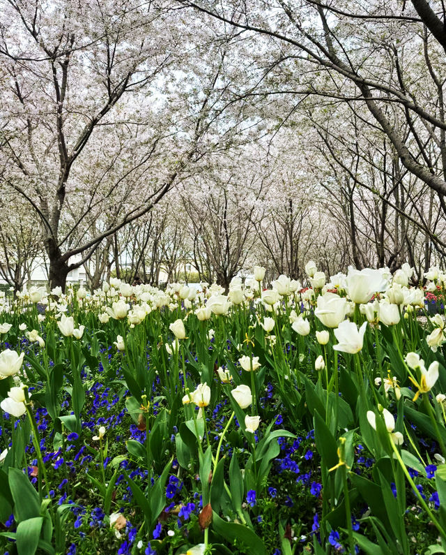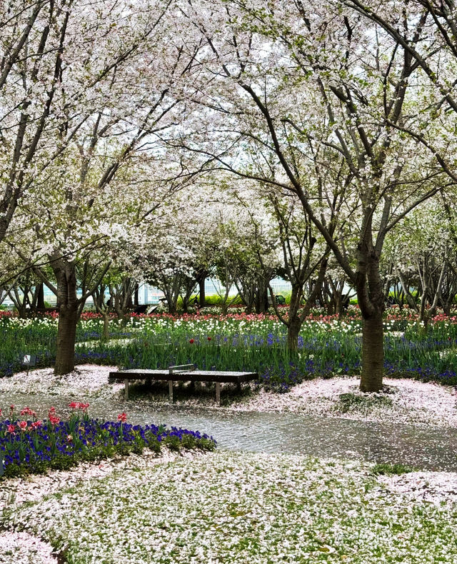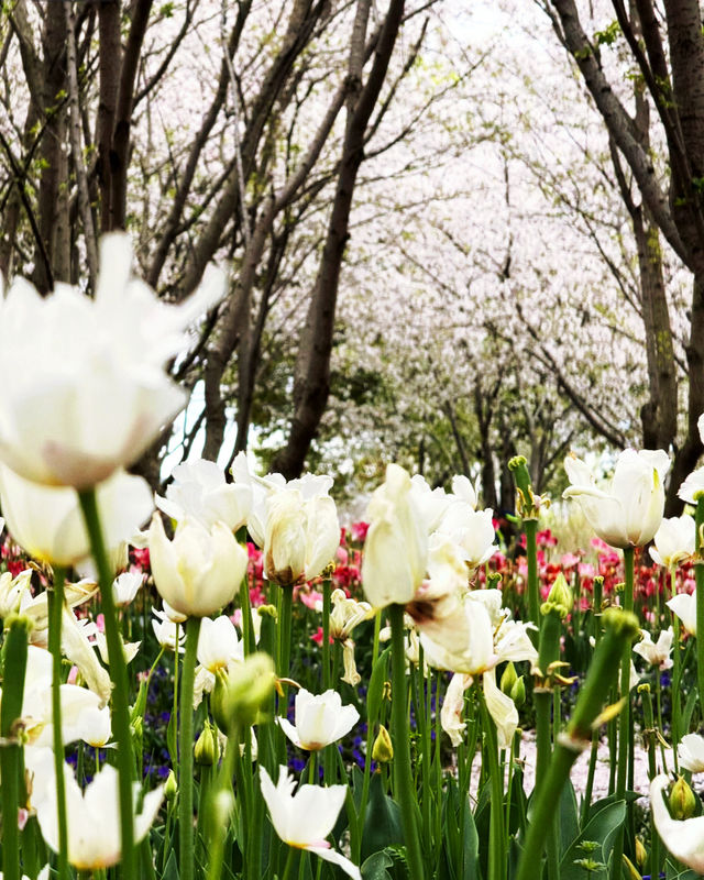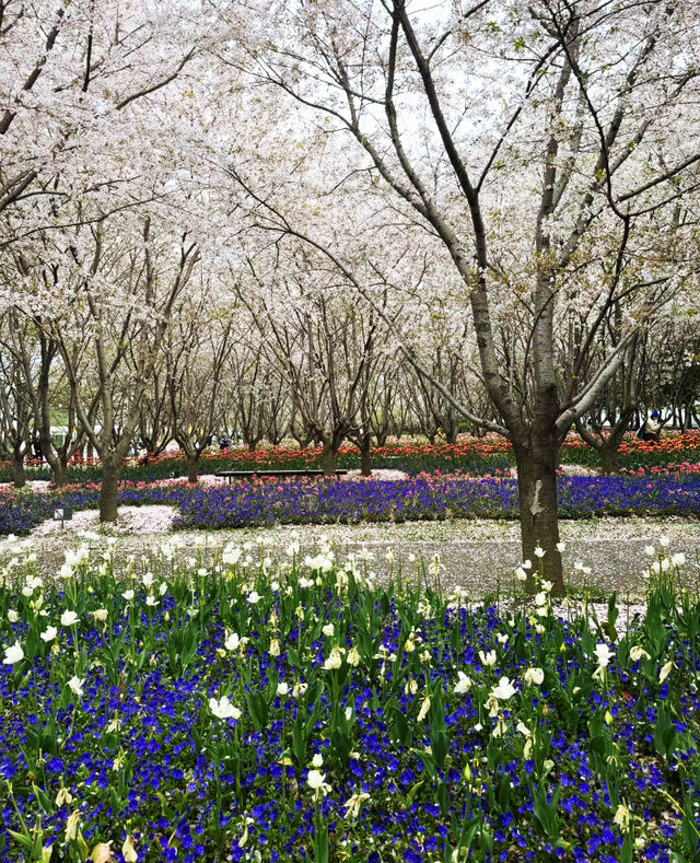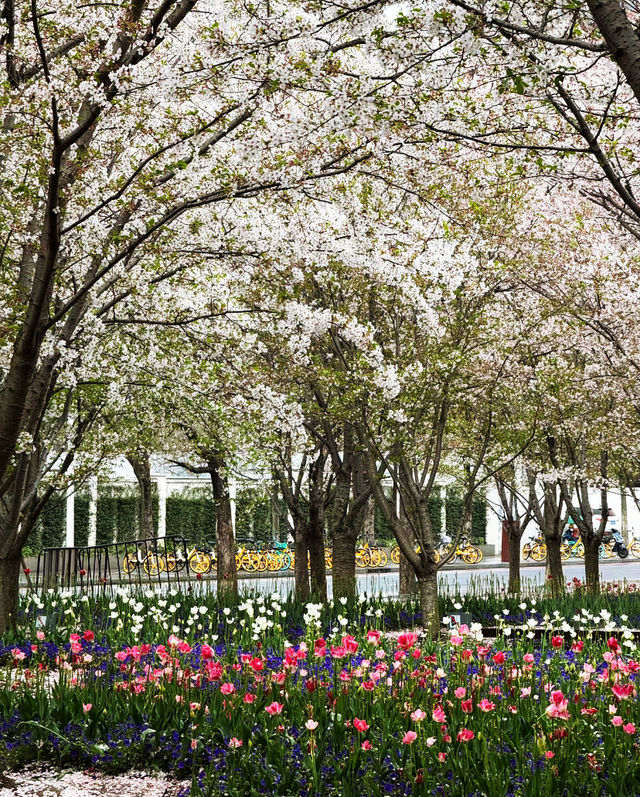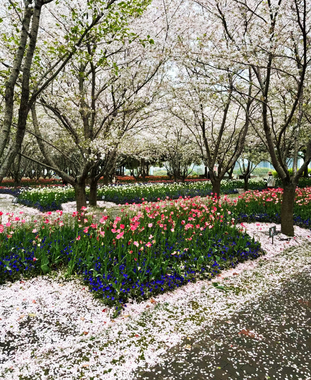 Cherry blossoms and tulips will bloom together a bit later, around early April. Friends planning to enjoy the flowers, plan your time in advance!~ 📍Check-in location: Qinjian Spring Garden, Miaojiang Road, Shanghai 🚇Transportation: Line 8, Tibet South Road Metro Station 📆Photo date: 2024.3.24 🅿️Parking: Miaojiang Road Parking Lot. 🎫Free admission 📸Photo tips 💐Outfit suggestion: Light-colored clothes complement the colorful flower sea better. 💐Best time to check in: Recommended on sunny mornings or after 3 PM. 💐Portrait shooting: There are plenty of tulips here, just avoid the crowds and find less crowded spots to shoot, no need to squeeze in. The tulips at the Bund are crowded, but here you can enjoy a whole large area 🌷 There are pink mixed, orange, reddish-orange, white… If you like tulips, this is the place to go!