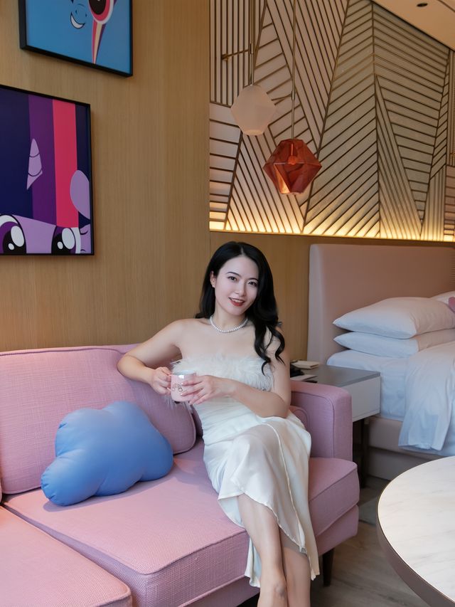 🌈 Open the door and be hit by an overload of sweetness! Shanghai Zhongyou City Marriott Hotel has actually brought the entire My Little Pony universe into the hotel. This princess declares this is the real-life "Friendship Magic Base." - 🏰 Marriott’s luxury x My Little Pony’s dreamy impact Walking into the themed area is stunning! The whole place is filled with My Little Pony installations and elements. Who knew a luxury hotel and a cartoon IP could match so well! - 💖 The room decor also makes my girly heart explode~ Soft pink colors combined with details that make you have to admire, you just can’t get enough! ‼️ The bathrobe, slippers, towels, and mugs are all co-branded! Super cute! - 🌴 The hotel now also offers an animal forest afternoon tea, it’s so adorable it’s almost criminal Invaded by the animal dessert squad at the lobby bar! Every little animal is so lifelike, it’s almost a pity to eat them! Not just looks, the taste is impeccable too! Perfect with coffee! - ✅ Marriott’s breakfast is always top-notch, with many options, both Western and Chinese flavors are excellent. I usually treat it as brunch, and in the evening, you can go to the executive lounge for some light meals. The environment is great, and the taste is good too. - ❤️ Nearby fun route Take a 5-minute taxi to Xinchang Ancient Town to visit the same teahouse as Gu Jia. Xinchang is known as the best ancient town for food in Shanghai, so just bring your appetite and come! - Tips: Wearing a light-colored dress to take photos in the themed room is super fairy-like!