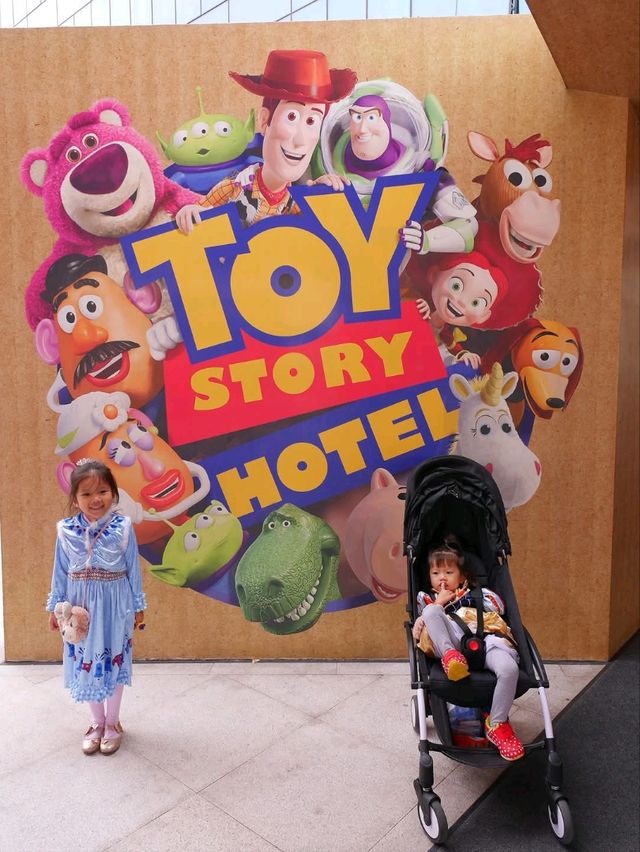 #TravelChina Who has ever thought about wanting to go to Disneyland and stay at a hotel inside it? Our family is one of them. . A special perk for guests staying here is that they can enter the amusement park 1 hour before it opens, meaning you can get in as early as 7 AM, and you can take photos and meet & greet with Woody and Jessie, the two main characters from Toy Story. The hotel is very cute, decorated with bright colors in a Toy Story theme. There are decorations, pictures, items, color tones, and many beautiful photo spots related to Toy Story. You can comfortably leave your luggage before check-in and after check-out. Staying 1 night and buying a 2-day Disneyland ticket is perfect. The service, hospitality, and friendliness of the staff are great, just like the Disneyland standard. They communicate quite well in English. In the lobby, Toy Story cartoons are shown for kids to watch all day, along with a souvenir shop selling Disneyland merchandise. The basement has a dining area with a cafe and market where you can buy drinks and snacks (prices are a bit high). Next to it is a game room for kids to play. The hotel is divided into 2 balconies: the Woody side and the Buzz Lightyear side, each with a statue of the main character on each side. There are 4 elevators, each with voices of the cartoon characters talking and announcing the floors. After check-in, you will receive a keycard that includes details of the number of guests in your party, which you use to enter the park early and access the special hotel guest entrance. The rooms have two 5-foot beds, and everything is decorated very cutely. Both boys and girls will likely love it. The bathroom has a bathtub that is not very large but better than none (a real heaven after a long day of walking, soaking before bed is bliss). The amenities come in a cute Toy Story box. There are also Toy Story slippers for both kids and adults, and Toy Story patterned cloth bags.