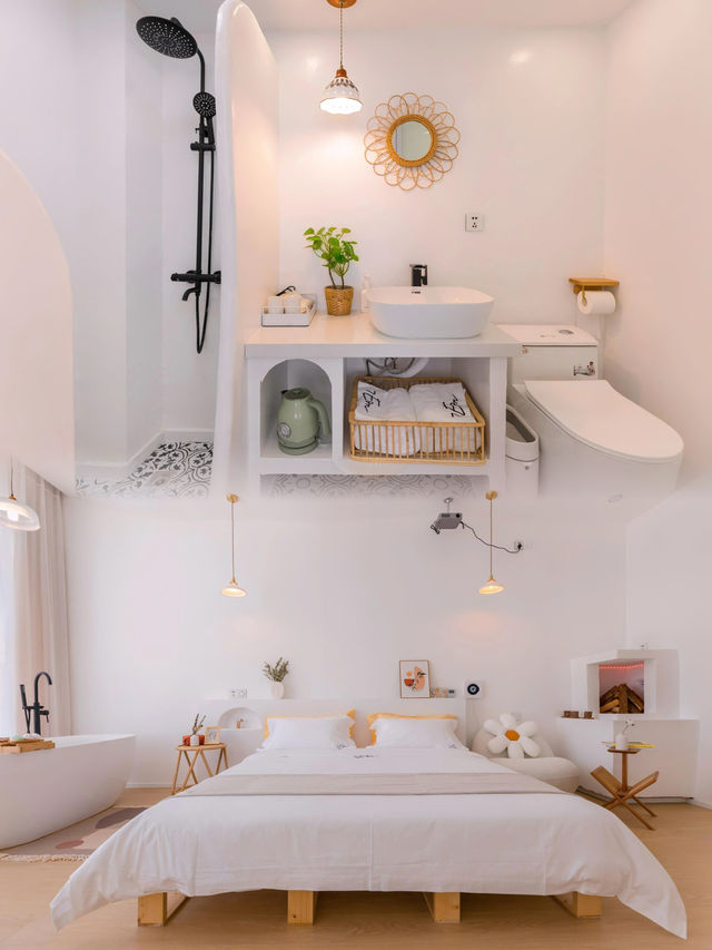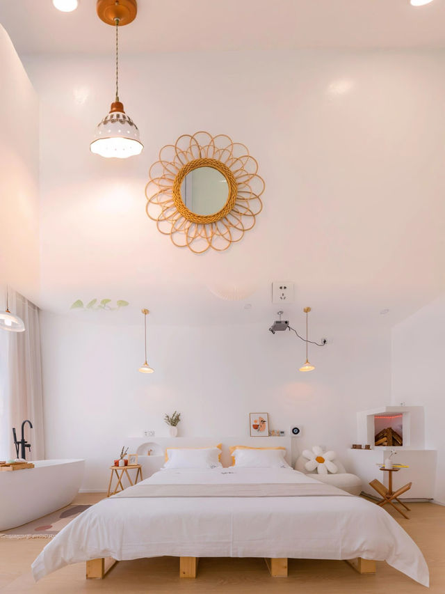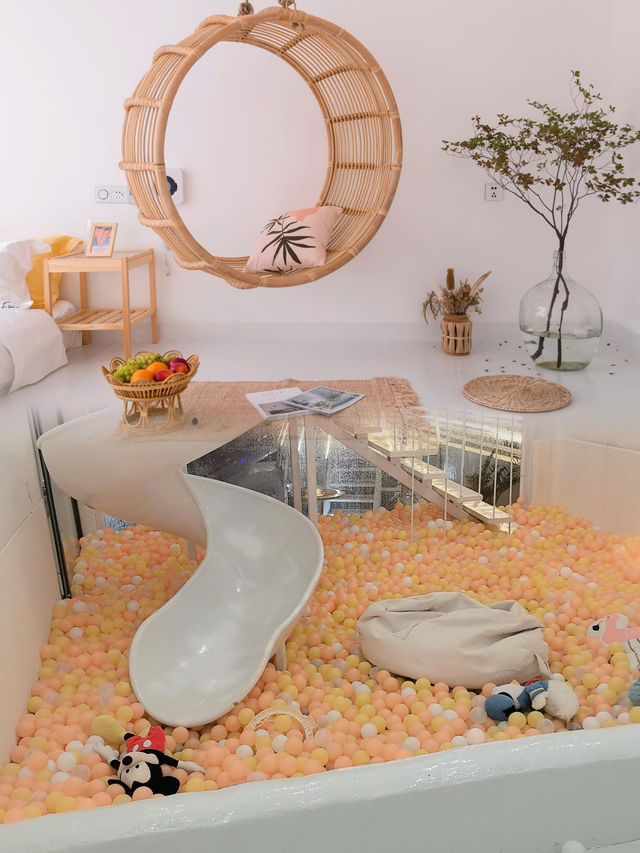The best guesthouse to watch the Disney fireworks‼️ I call this guesthouse Mickey's Wonderful House❗️ Hahaha, because it is a Mickey-themed castle guesthouse❗️ 📍Disney Seven Eon 7Eon 💰Price: Around 200+ per person 🌟Features: White Mickey castle, slide pool, hot air balloon backyard, wedding room 🏰The castle exterior is entirely shaped like Mickey❗️You can also watch the fireworks and it has Disney’s only pool slide! The post-90s owner is super nice❗️Each room is specially designed with photo spots, full of Instagram vibes~ 🪟Design style: Even before checking in, I could feel the strong Disney atmosphere from the outside. The whole guesthouse looks like a giant Mickey, and the rooms are inside Mickey’s belly. The rooms are fresh, clean, and bright, very comfortable to stay in, exactly the style I like❗️❗️