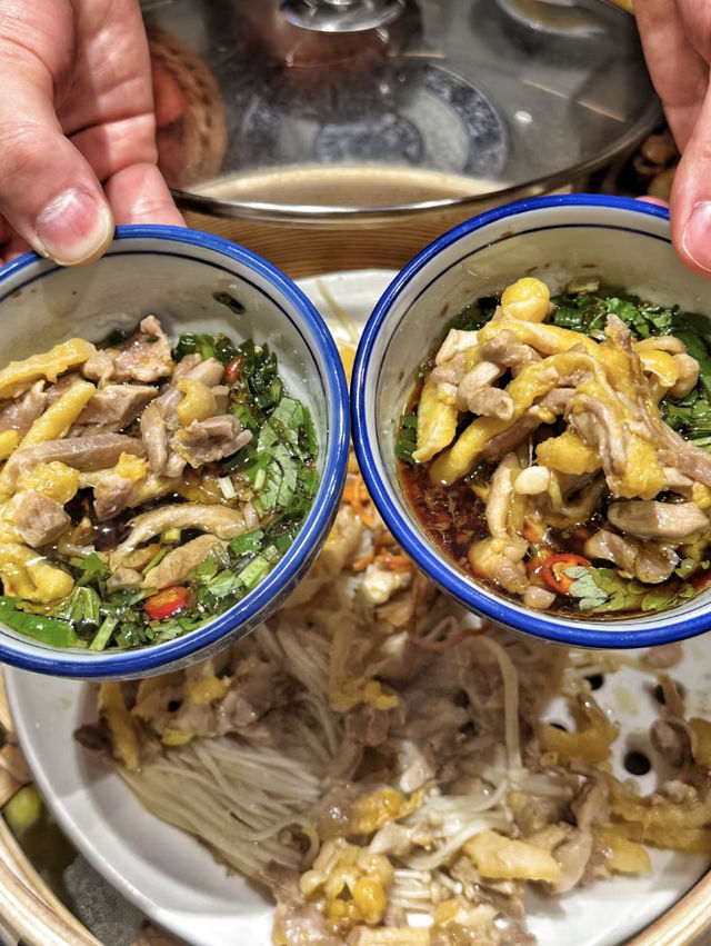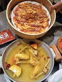 Shunde Sauna Zhanjiang Chicken One of the signature dishes, prepared fresh to order to ensure the ingredients are fresh. The chicken is tender and smooth, paired with the restaurant’s special sauce, making it incredibly delicious. The bottom layer contains ingredients like five-finger peach, chicken frame, corn, red dates, and carrots. The chicken soup can be refilled unlimitedly, making it the perfect nourishing chicken soup for winter. Sizzling Crispy Fresh Intestines The sizzling crispy fresh intestines are fragrant and crispy, with a slight spicy and savory flavor. The intestines are carefully selected and processed, with no off-flavors. The texture is chewy and very appetizing, making it a great match with rice, leaving you wanting more after eating. Sham Tseng Roast Goose Sham Tseng roast goose has a crispy and tasty skin that crackles when bitten. The goose meat is tender and juicy with a rich texture, carrying a subtle smoky flavor that doesn’t overpower the natural sweetness of the goose meat. It’s unforgettable after just one try.