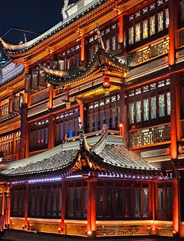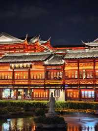 Yuyuan Old Street (豫园) is a must-visit landmark in Shanghai. This pedestrian-only street is lined with buildings in traditional Chinese style. Walking in feels like you've truly stepped into an ancient Chinese TV series. It's absolutely beautiful at night, with every building lit up. The contrast between the lights and the red wooden buildings is truly stunning. I can't even describe it, so I'd like to share some of the photos I've posted. The real thing is a thousand times more beautiful than the photos, no exaggeration. Besides admiring the beautiful buildings, you'll also find food vendors selling a variety of food, drinks, and souvenirs. A visit here will leave you both feeling both satisfied and amazed. Another must-do when visiting this place is the giant xiaolongbao (steamed straws). The soup is incredibly delicious. Go try it! #visitShanghai #visitChina