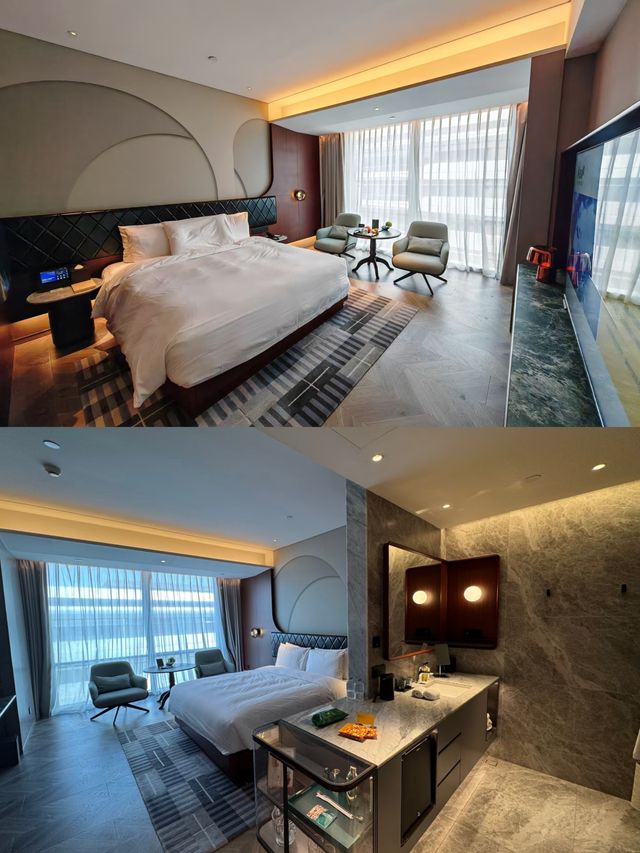 I discovered a ridiculously smart hotel right next to Hongqiao Airport! Robot butlers, self-service bartending, Hansgrohe showers… Is this really a business hotel or a future tech museum? 🤯 A completely ad-free real experience, follow me to explore this "stunningly beautiful" place👇 🚨 Location hit: Airport travelers rejoice! 📍 No. 9, Lane 77, Shangkun Road, Minhang District (inside Qibao Business Eco Zone) ✈️ 8 minutes by car from Hongqiao Airport|🚄 15 minutes from Hongqiao Railway Station|🚇 Walkable from Hangzhong Road Station on Metro Line 10 💡 Real experience: A lifesaver for late-night flights! Taxi from Terminal 2 to the hotel costs less than 10 RMB, and the hotel offers **paid pick-up service**, perfect for lazy travelers to just go for it~ ⚠️ Tips: The north entrance security check at Hongqiao Station is less crowded! Personally saved 20 minutes of queuing 🏨 Room review: So smart it makes your phone obsolete! - Smart control: Full voice control of lights/curtains/air conditioning, one-click screen casting to watch movies like a pro 📺 - Self-service bar: Fridge stocked with Jägermeister + soft drinks + bartending tools, make yourself a mojito at night for free 🍹 (free minibar really gets me!) - Detail lovers rejoice: Hansgrohe shower with spa-like water pressure, De Rucci mattress that puts you to sleep instantly, soundproofing comparable to a recording studio 🎧 💣 Warning: Air conditioning wind is too strong 🌪️, cold-sensitive guests remember to lower the temperature! Some rooms have showerheads that aren’t very stable, but repairs were quick after feedback. 🍽️ Food guide - Inside the hotel: ✅ Manmiao Bar: Traditional German pork knuckle + sausage platter 🇩🇪, paired with craft beer, super authentic (about 150 RMB per person) ✅ Meilun Restaurant: Outdoor breakfast seating on the 5th floor with city views, 128 RMB per person buffet is a bit pricey but the baked goods are excellent 🍳 - Within 10 minutes around: 🔥 Hongqiao Tiandi (1 metro stop): Su Xiaoliu handmade steamed buns, Cai Lan Hong Kong-style dim sum 🔥 Korea Street (direct on Line 10): Jongno Chamber BBQ, super popular coffee shops 💡 Hidden tip: Can’t get your favorite takeout? Try robot delivery straight to your room 🚶 Lazy traveler routes - Business travelers: Hotel → National Exhibition and Convention Center (15 min drive) → Hongqiao Tiandi for shopping and eating → hotel bar soak - Leisure travelers: Hotel → Minhang Cultural Park for a walk → Qibao Old Street for tangyuan → Korea Street for photo booth fun 📸 ⚠️ Heads up: The hotel is far from Disneyland/The Bund (1.5 hours by metro), best for Hongqiao transit or exhibition visitors! 👍 Real experience: Service details blew me away - Free room upgrade at check-in|24-hour self check-in kiosks|adorable robot delivery - Downsides: Limited breakfast options and pricey (128 RMB/person), nearby metro is convenient but requires transfers to reach downtown~ Overall, this is already a fantastic hotel!