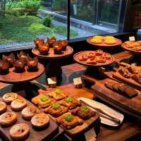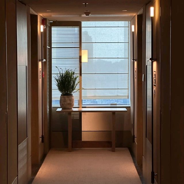 #ShanghaiHotel The Shanghai Alila perfectly balances two essential qualities of a staycation hotel: a quiet rhythm and central urban convenience. 🍃 The design is exquisite and elegant, in the quintessential Shanghai style. With many local guests, the hotel exudes a friendly, luxurious atmosphere. The automatic entrance door design is striking! Two doors carve out a dark red, separate space, evoking a mysterious solemnity reminiscent of the Continental Hotel in the movie "John Wick." ✨ The staff's attentive service is unobtrusive, creating a cozy atmosphere. Some people complain that the path from the lobby to the elevators is a bit complicated, but I actually like the dark colors and winding corridors, creating a tranquil space secluded from the mundane world. The view from the roof bar is spectacular, and the sparkling wine served during the sunset ceremony is delicious. 🥂 The outdoor courtyard design is ingenious, creating a hidden paradise that's hard to imagine from the outside. The service and facilities seem to surpass the Wuzhen Alila, and perhaps because of the limited number of rooms, the staff are more attentive than the Beijing Park Hyatt - they offer complimentary check-out extensions, provide steam eye masks and sleep sprays, and securely tie down bags and suitcases when storing luggage - all of these are very thoughtful. However, the computer would often freeze upon check-in, and the quality of the bathroom amenities and hair dryer, as well as the limited selection in the minibar, could all be improved. The breakfast was excellent! There was a wide variety of bakery items, and Shanghai specialties like hot pot rolls, xiaolongbao, and shrimp noodles were delicious. Even the green vegetable porridge had a homemade feel to it. 😋 I'd love to return to Shanghai soon and enjoy a relaxing stay here.