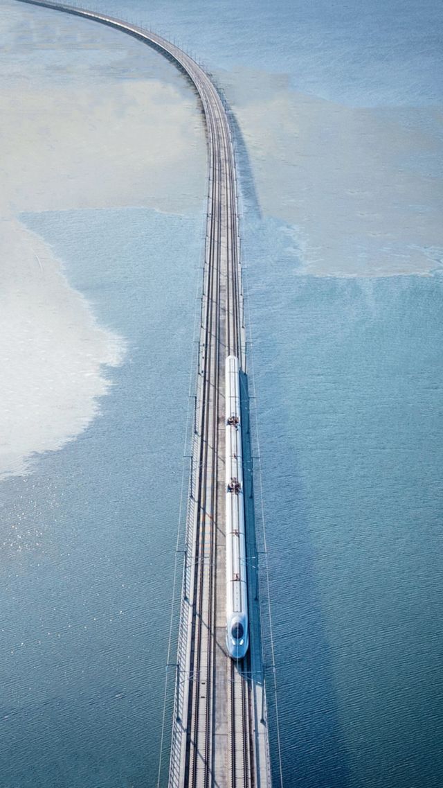 The landscape bridge over Yuandang Lake is like a silver ribbon.