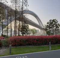 Lighted up at night so it's quite pretty. It separates pudong and puxi so it's nice vantage to see the lights - there is especially a rainbow lit building which they told me is actually a nondescript building. #wintergetaway #wintergetaway