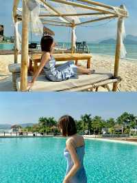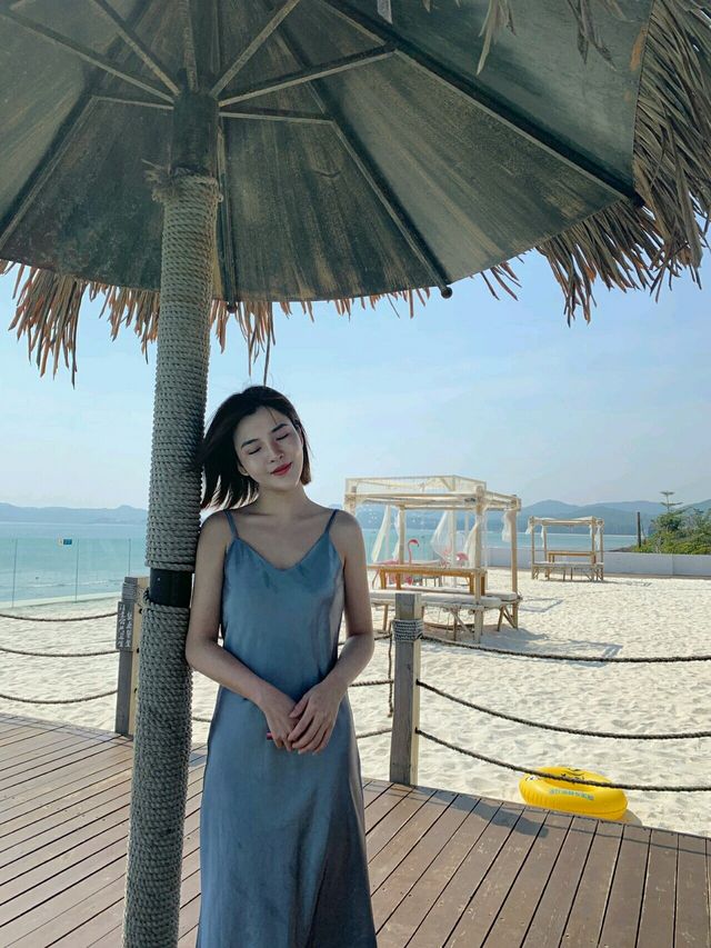 Seizing the tail of autumn for another seaside vacation💦 I've been wanting to visit this homestay for a long time, and today I can finally enjoy it💆‍♀️ · 📍Location Shenzhen Dapeng New District Obidos ❤️Homestay Features❤️ The homestay🏨 style tends to be modern and simple🏖 The most attractive thing is its infinity pool👀 Any shot is a blockbuster. It has an unbeatable sea view with afternoon tea🧀 There is also a Maldives-style small beach😍 The color is very clean and comfortable to look at. 🥰「Food」The homestay offers free buffet breakfast🥛🥪 In addition, you can barbecue by the sea at night🍢 and there are many seafood restaurants around‼️ [Guest Room」👍👍 There is a round bathtub🛁 by the floor-to-ceiling glass window, you can enjoy the unbeatable sea view🏝 while taking a bath~ ❤️Outfit❤️ 📸This time I wore an indigo strap dress👗 The silk material matches the white beach and the blue sea🌊 It's extraordinary‼️‼️ ⚠️Small suggestion: The style of the homestay is fresh and simple👙👙 Don't dress too flashy👗 Simple black/white dress can also be very fairy. If you want to wear a high-end feel on the beach, small accessories are indispensable 👒 Brimmed hats/straw hats are super matching. For shorter girls, you can wear some high-waisted or waist-tied skirts to make your legs look longer‼️‼️ ❤️Photography❤️ With the right outfit, can you take some good photos🕶 The photography part is also very important. It's not easy to relax once🙅‍♀️ Refuse tourist photos. Actually, if you choose the right clothes, taking pictures will be much simpler💃 The sea view of the homestay is beautiful, you can choose to take a long shot to capture a more comprehensive view🏖 You must go to the artificial beach, when the wind💨 gently blows, lift your hair💁‍♀️ Relax a little, the effect is super good. Symmetrical composition places the whole person in the center of the picture💆‍♀️ It will highlight the person as the subject, and the figure will look longer!! Filter recommendation‼️ The weather was good that day, so my pictures didn't have any filters‼️‼️ Don't worry about encountering gloomy weather~
