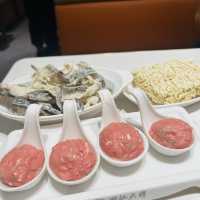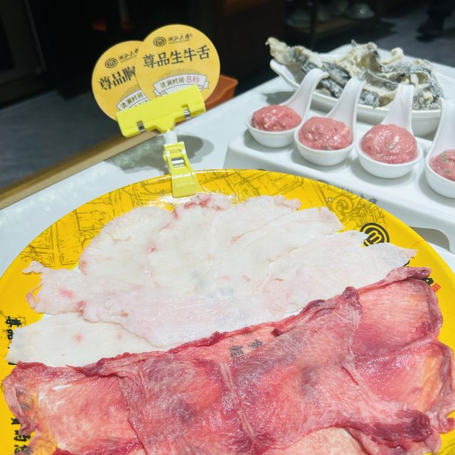 #Must-visit photo spots in the #Greater Bay Area Whenever we go to Shenzhen, we must go to "Damu Beef Hot Pot🍲"! Because hot pot is my favorite ❤️, it is a 42-year-old brand in Shantou! It is also the longest-standing Chaoshan beef hot pot in Shenzhen! 🤩 Damu signature focuses on [Premium Beef Series] and "first chest raw beef balls" their family selected Shaanxi Qinchuan native yellow beef, the best of yellow beef! Three trips a day fresh to the store, no more than 3 hours from slaughter to serving! Premium Beef: The premium yellow fat beef. After rinsing for a few seconds, put it in your mouth. The whole piece of beef is fat but not greasy, fresh and sweet and bouncy! The taste is fresh and delicious!