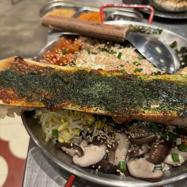 This is the second time I have come to eat the vegetable board, and I miss his beef bone marrow with rice! It's really delicious😋 The main dish is the roast beef offal barbecue, all kinds of beef parts are provided. The restaurant is decorated in a very cool style, it's the smoke in the city, playing Korean pop songs, the whole person gets high. The staff's service is very attentive, basic preparation does not wash hands to eat. Deserving of praise I had to order the beef bone marrow with rice, the whole arm so thick and long beef bone marrow, really evil, rice is similar to Korean rice, with buds, kimchi, eggs, and d sauces, etc 📍Shenzhen Excellent Intown