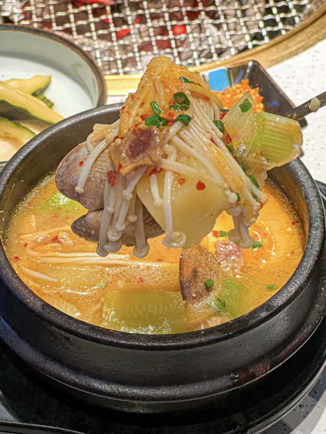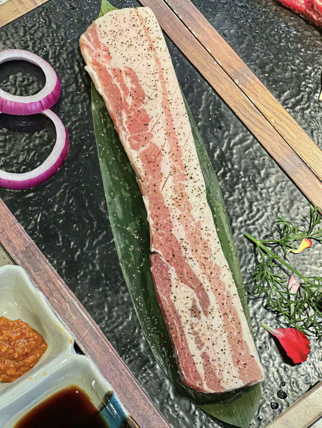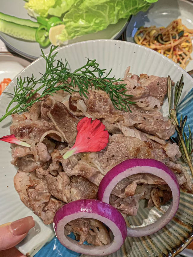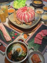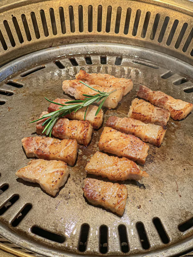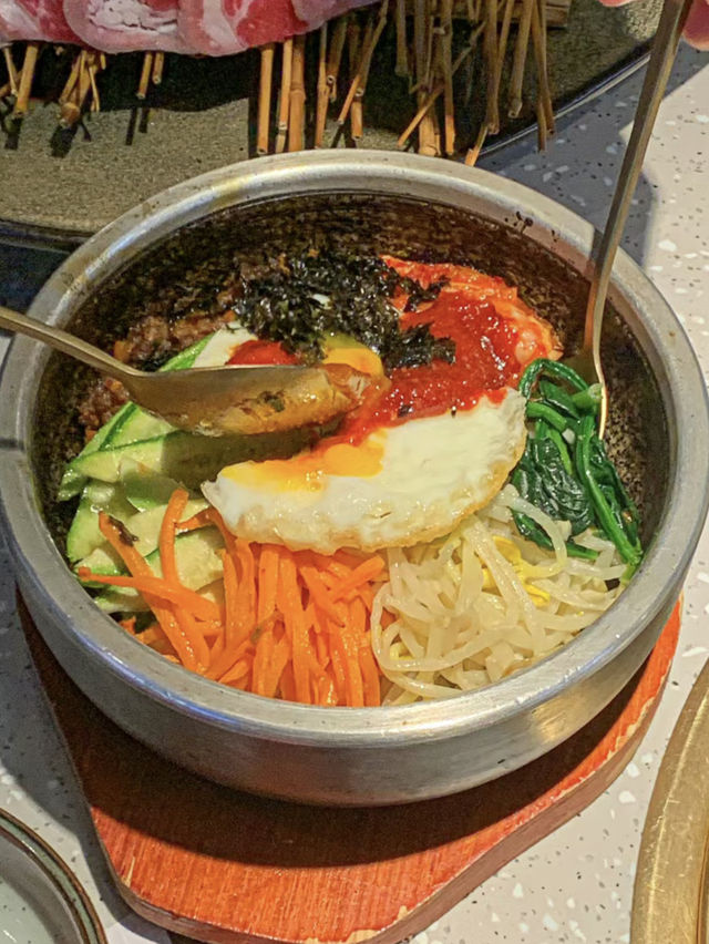 Each plate of meat in this shop is exquisitely arranged, beautiful, and of high quality, and the staff will help with the grilling, providing very considerate service. 💟 Yunding Snow Mountain Beef The beef is marbled with fat and lean, generous in portion, and grilled to a fragrant and rich flavor. Topped with sauce, it's delicious to eat. The beef plating is like a birthday cake, so if someone has a birthday, you can order one. 💟 Black Beef Snowflake Belly Meat The snowflake pattern is beautiful, and grilling it to 70% done is just right, tender and juicy. Eating it fills your mouth with a delicious meaty juice. 💟 Han Yan Stone Pot Mixed Rice Colorful side dishes, including a runny yolk egg, with more toppings than rice. When it's served, it's still smoking hot, which is really great.