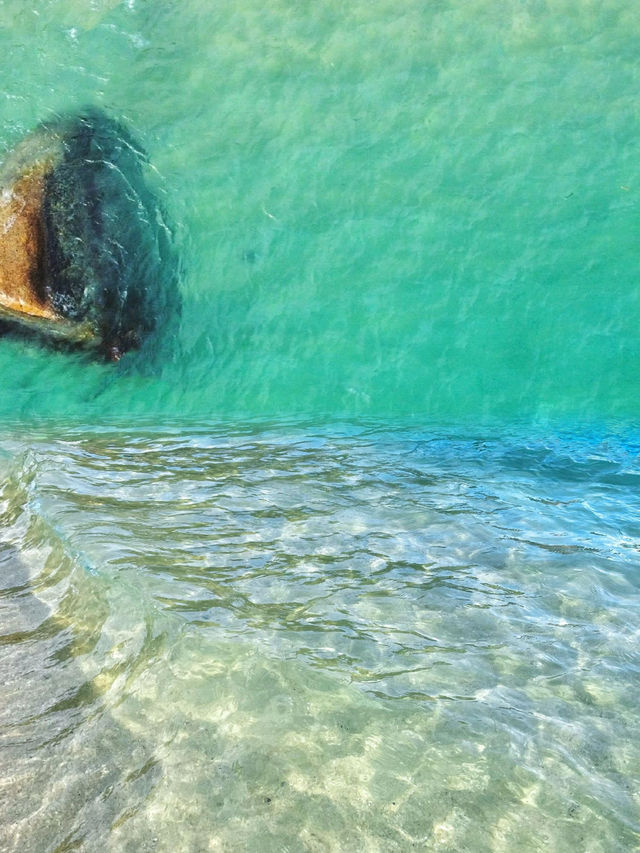 I thought the sea at Jiediaosha was very clean and clear last time, but I didn't expect this place to be the real deal, YYDS. I was worried about it being a photo trap before coming, but what I saw with my own eyes is even more beautiful than the pictures~ Moreover, this place is open for free, so you can come and play without staying at a hotel. I suggest you definitely wait for a sunny day or come in the morning when there are not many people, and the sea is that kind of clear jelly color that you can see to the bottom, really similar to the glass jelly sea in Phuket. You can also swim, snorkel, paddleboard, speedboat, and so on... What I like the most is the walkway next to it that leads to the end of the sea, it's really amazing, especially for taking photos along the walkway, which is super photogenic. You can also sit on the rocks and enjoy the sea breeze, which is particularly healing. 🚧Address: Yu Gang Bay Beach, Nanao, Shenzhen 💰Price: Free 🚅About Transportation The transportation here is not very convenient, there is no bus or direct car, it is best to drive by yourself, you can park on the roadside, but there is a risk of getting a ticket, or park in the parking lot inside (charge 50¥). If you are taking a taxi, make sure to book your return trip early, as it can get congested later and it's hard to book a taxi. (Note: You need to make a reservation in advance for driving into the Dapeng area on weekends) ✅Play tips: ① Make sure to swim within the designated area, try not to go to deep water, and pay attention to safety. ② Be sure to do good sun protection, and you can also prepare some snacks and water, as the prices inside the scenic area will be more expensive. ③ You can swim, snorkel, ride a motorboat, and paddle (charges apply). ④ Weekends and holidays are prone to traffic jams, it is recommended to come on weekdays or before noon when there will be fewer people, also the beach is a niche beach, not very big.