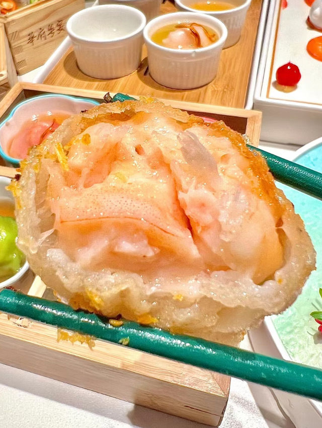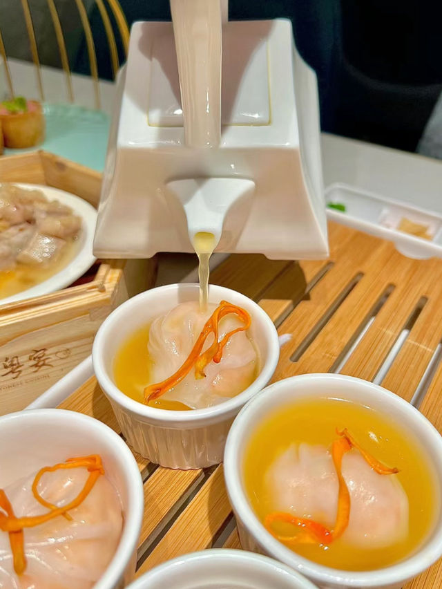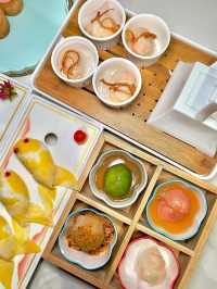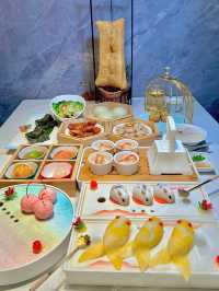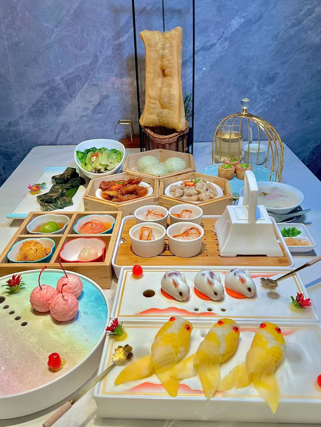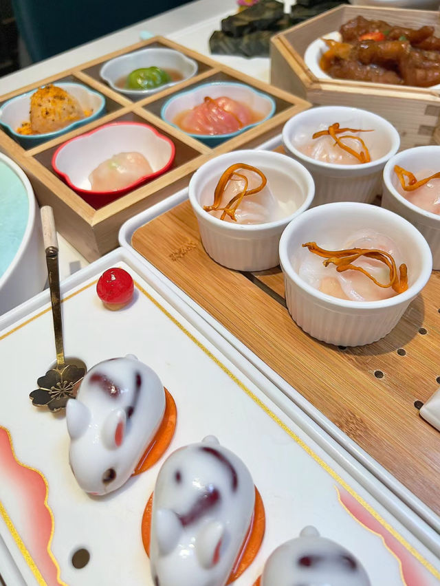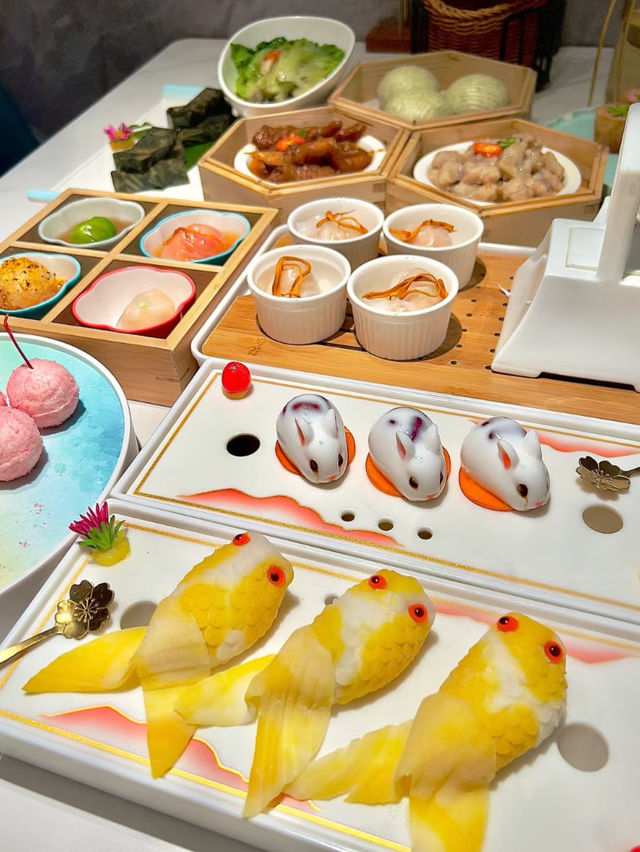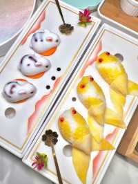The dim sum at this restaurant not only looks gorgeous, but also tastes delicious and the environment is great. It's really worth a try. 💟 Little White Rabbit Pudding It's extremely delicate, so much so that you'd hesitate to eat it. It's a red bean milk pudding that's silky smooth to the taste. 💟 Lucky Koi Fish The filling inside is sweet, not too greasy, and there's dry ice underneath, making it top-notch for a photo op. 💟 Bonsai Milk Crust Tart The crust is like that of an egg tart, but even crisper than the usual egg tart crust, with a soft and fluffy interior similar to the filling of an egg tart. The top layer is even sprinkled with crunch. 💟 Kung Fu Soup Shrimp Dumpling The dumplings are filled with large chunks of shrimp, and the skin is chewy and crystal clear. 💟 Steamed Pork Ribs with Gold and Silver Garlic The ribs are from the best part, easy to fall off the bone when eaten, and the garlic is fragrant, with taro wrapped underneath