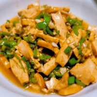 Chef Fei's Spicy Stir-Fried Pork Previously tried it in Shenzhen, and it was really appetizing, making you want to eat several bowls of rice! Highly recommend the roasted chicken, the whole roasted steel pipe chicken is then hand-shredded, with crispy skin and juicy tender meat, slightly salty and crispy. Even the chicken breast is made to be as tender as possible! The spicy stir-fried pork is a must-order, and I also discovered a very fragrant sour and spicy jumping frog (yellow lantern chili) with a sour and spicy taste, also a great companion for rice. The pork is very fresh, cut right at the entrance. The stewed abalone with loofah is also slightly spicy, perfect with rice, full marks! Just make sure to prepare in advance, take a number, and be ready to wait during busy times.