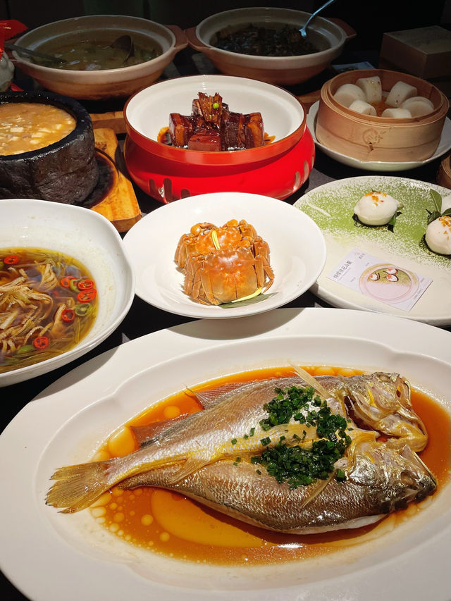 After get off work, I met my colleagues for dinner. I didn’t expect to meet so many Hong Kong friends! 🍽️ The store is quite large, with a lobby and private rooms. It is decorated in an elegant Jiangnan style, simple yet refined, with wooden tables and chairs, decorated with green plants, and rich cultural heritage. It has a tranquil beauty away from the hustle and bustle, and is very suitable for dating and dining! 🎉 🦀Cooked drunken crabs Autumn is a good season for eating drunken crabs. We select high-quality hairy crabs. Under the crab shells, there are full crab roe and tender white crab meat. They are pickled using traditional techniques. The mellow aroma of wine and the deliciousness of crabs complement each other, which is very memorable. 🥩Braised Pork As a classic of Jiangsu and Zhejiang cuisine, it is a must-try item. The pork belly is carefully selected and slowly stewed until the meat is tender and the color is attractive. The fat and lean meat pieces absorb the aroma of the sauce and melt in your mouth. Every bite is a taste of happiness. 🐟Scallion-scented East China Sea small yellow croaker The fresh small yellow croaker from the East China Sea is fresh in ingredients, generous in portion, fragrant with scallions, delicate in fish meat, and tender in taste. It is really delicious. 🍋Lemon Osmanthus Yam A beautiful dessert that combines osmanthus and yam into the shape of a lemon. It has a light osmanthus fragrance and a soft and smooth texture. It is a double feast for the eyes and taste. Ⓜ️Store name: Guiyuxi·Exquisite Jiangsu and Zhejiang cuisine 🚇Transportation: Metro Line 1/10 Gangxia Station Exit C walk 200 meters 📍Address: 2nd Floor, West District, Zhuoyue Center, No. 348, Fuhua Road, Futian