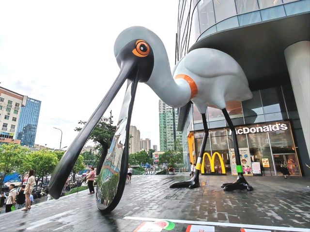 Bantian Vanke Plaza - a shopping mall that integrates natural elements, a large "Black-faced Spoonbill" card