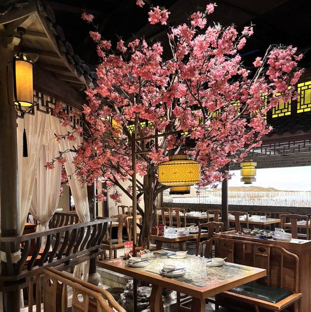 My first experience with Hangzhou cuisine in Wuzhuang, Shenzhen! 🤩 Dining under the peach trees, perfect! 😋