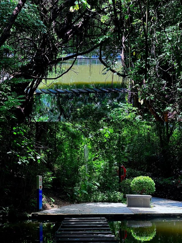 Hidden in the bustling heart of Overseas Chinese Town in Shenzhen lies a real-life "Wizard of Oz." Dense forests block out the sky, sunlight filters through the leaves creating dappled patterns, the sounds of insects, birds, and flowing water blend together, and the moment you step in, all your fatigue is gently healed. 🌳 Hidden gem: Yanhanshan Country Park (Main Entrance), Shenzhen There are no crowded crowds here, only endless greenery and freshness. Strolling along the trails, towering trees layer upon layer, vines entwine the branches, and occasionally you encounter winding streams with water tinkling, as if stepping into a fairy tale forest secret. 🚗 Transportation Guide (Super convenient, direct from downtown) - Metro: Line 1, get off at Overseas Chinese Town Station, Exit A, about a 10-minute walk; Lines 2/8, get off at Qiaocheng North Station, Exit B, about an 8-minute walk - Driving: Navigate to Overseas Chinese Town Eco Plaza parking lot, parking is convenient - Admission: Free entry, enjoy "forest freedom" 📸 Photo & Play Tips 1. Outfit suggestion: White, light colors, or forest-style clothing to contrast vividly with the green background, naturally adding a fairy-like filter, 100% photo success rate 2. Mosquito prevention: The forest vegetation is dense with many mosquitoes, be sure to spray mosquito repellent in advance to avoid bites 3. Best time: 9-11 AM or 4-6 PM, when sunlight is soft and not glaring, the dappled light through the leaves is stunning 4. Shooting angles: Low-angle upward shots (avoid crowds), use leaves as foreground composition, squat by the stream to capture reflections, easily create cinematic photos Here, you don’t need to escape the city to immerse yourself in nature’s healing. Listen to the rustling of wind through the leaves, watch the light spots dance on the ground, even your breath becomes fresh and free—truly a "city healing secret" for Shenzhen’s workers~