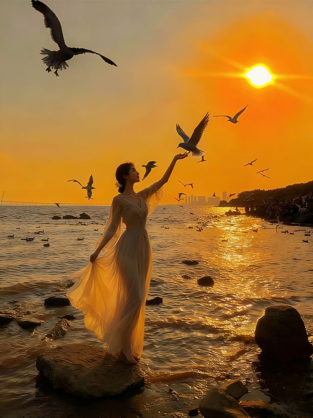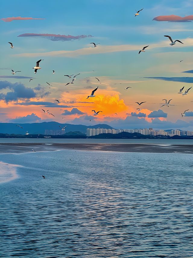 With a piece of bread in hand, rushing out of Metro Line 9 Exit D2✨ I never expected to be "hit" by Shenzhen’s winter so fully💥 — Just 50 meters away is a dazzling flock of seagulls😍 These little guys from Siberia are fluttering their wings as they fly past the coconut trees🌴 The wind carries the salty sea air and the warmth of the sunset☀️ 💡Must-visit time: 3:30 PM, the "Seagull Feeding Time"! Hold up your soft toast high, and some brave ones will dive down to snatch it Wearing light-colored clothes for photos is absolutely perfect👚 Last week I wore an off-white coat, and my friend said I blended into the background like an oil painting🖼️ 🌇Orange Sea Sunset after 4 PM: Right across are the buildings of Hong Kong🌆 When the sunset dyes the sea orange, the Hong Kong-style filter is maxed out📸 Even straight from the phone’s camera, the shots are stunning💥 🕒My lazy itinerary: 15:00 Seagull feeding battle 16:00 Walk along the coconut tree coastline 16:40 Squat on the rocks to wait for the breathtaking sunset 17:30 Chance encounter with joyful moments at the free playground🎠 🚇Transportation tips: Metro Line 9 Shenzhen Bay Park Station Exit D2 is direct But! After 3 PM on weekends, the crowd surges👫 It’s recommended to arrive 20 minutes early to secure a spot~ 🎒Light travel checklist: ✅Soft bread ✅Phone + power bank ✅Good mood (Chill vibes are what you need for a seaside walk~) Last week, I was truly healed by this sea🌊 This is how a working person’s weekend should be spent! Have you ever taken super satisfying seagull photos? Come to the comments and share your photo battle👇