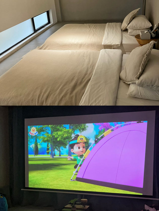 The guesthouse is located in the century-old Jingu Village, halfway up the mountain, surrounded by green hills and clear waters. The air is fresh, like a secluded paradise. Wake up to the sound of birds in the morning, open the window, and see the mist swirling among the mountains—it's truly beautiful. The room is filled with natural wood and bamboo elements, fresh and healing! Falling asleep to the sound of cicadas at night is really pleasant~ The rooftop features a starry sky bubble house, perfect for watching the sunset—super romantic! You can walk to a nearby creek to wade in the water and catch fish, or camp and barbecue. Adults can relax while kids have fun, both at the same time. The guesthouse offers free breakfast, afternoon tea, and goodnight sweet soup. Breakfast includes fried noodles, porridge, and dry food; afternoon tea has fruit, cake, and tea. If you don’t want to go out for dinner, you can also book lunch and dinner at the guesthouse. The service is really great👍