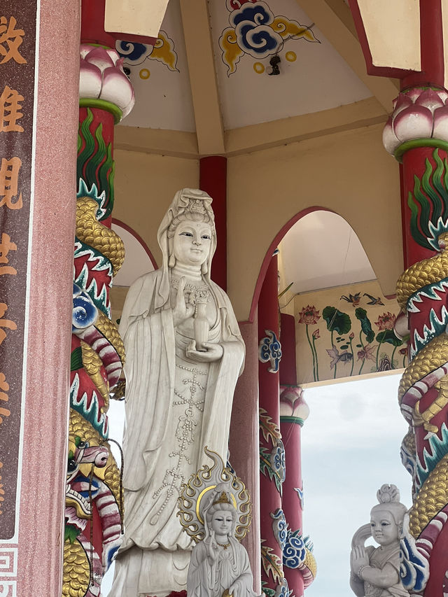 For those on a trip to Sri Racha, don't miss the Guan Yin Bodhisattva statue on Koh Loi, Sri Racha. #The largest white jade Guan Yin statue in Thailand. It's one of the places in Thailand where I feel the most positive energy. Paying respects to Guan Yin is like paying respects in Hong Kong. 🙏🌸 #But recently, I went to pray for good fortune from her and received a great blessing. Normally, I pray for everything from her. 🙏 such as: • Prosperity in career and finances • Good health, freedom from illness • Love and family, fulfillment and warmth • Dispelling bad karma and protection from danger Once there, you can also pay respects to other deities, such as the Wang Tai Sian, for those born under the name of the Buddha. For Hindus, there are also Ganesha, Uma, and Lakshmi. It's also adjacent to a Thai temple, so you can find complete spiritual energy in one place. The feng shui is excellent, and the view is stunning. #VisitChonburi #TravelPlan #MueangTourism