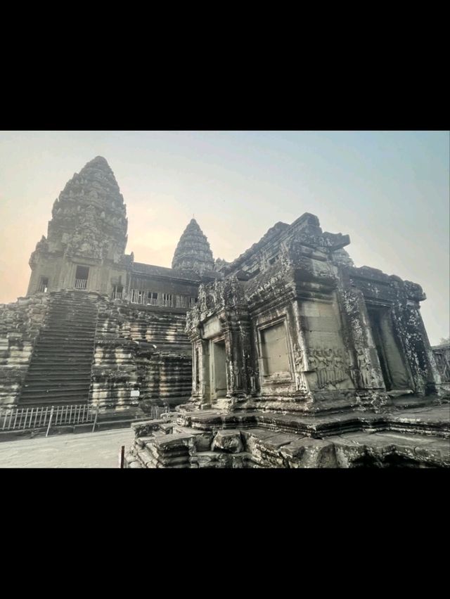 🌅 Experience Sunrise Magic at Angkor Wat & Legendary Cafés in Siem Reap 🛕☕ Start your day early to catch the breathtaking sunrise at Angkor Wat—the temple’s silhouette rising against a misty sky is pure wonder. Head there by 5 AM for a prime viewing spot. After sunrise, explore the Angkor Wat complex and marvel at intricate carvings and vast corridors. Don’t forget to snap shots of the central towers; the reflective pool is the classic insta-worthy angle! Next, wander over to Ta Prohm Temple (07:30–17:30), where ancient trees embrace centuries-old ruins. The roots winding through crumbling walls make for mesmerizing photos—early morning or late afternoon light gives a dramatic vibe. Continue to the Hall of a Thousand Gods (CV68+XFR, 05:00–17:30), wandering among countless serene Buddhas in a quiet, sacred setting. Another must-stop: Bayon, with its famous enigmatic carved faces—smile back at them for a quirky travel snap! Detour out to Angkor Silk Farm (NR6, Puok), where you’ll witness traditional weaving and learn about silk production. It’s an interactive and colorful experience; the lush outdoor landscape offers tranquil photo spots with local trees and architecture. On your last day, spend time in a famed Cambodia café, soaking in local vibes, sipping aromatic coffee, and watching rainy clouds roll past. A perfect slow-travel moment to wrap up your adventure. 🌧️ Bring a raincoat if clouds threaten—Cambodian downpours can be sudden and fierce! Carry cash for temple tickets, and start early to avoid crowds and the midday heat. #SiemReap #AngkorWat #TempleHopping #CaféCulture #CambodiaTravel