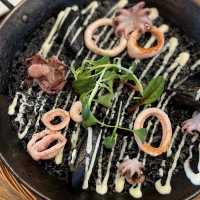 This is Girona, a Spanish restaurant. I wrote my birthday when I made the reservation, and they even wrote it in such a nice handwritten note! I was so touched! The squid ink paella was just right, not too salty. The octopus fries!! And the polvo (something) The garlic-filled K-gambas with a whole large shrimp, lol. The atmosphere was also great. I'll definitely be back again :) #GwanggyoTravel #DateCourse #SpanishRestaurant #CapturingSummer #RestaurantExploration